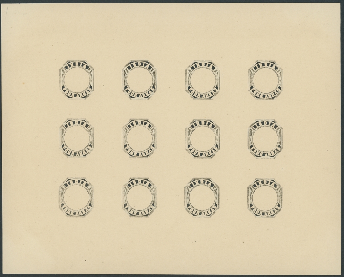 4a. frames in black on white wove paper, complete sheet of twelve, the 1916 impression taken from the stone prior to defacement. Large hinge remainder on reverse, but very rare, unique in private hands. R.P.S. Certificate (1996) (incorrectly identifying it as the 1905 impression). Photo.