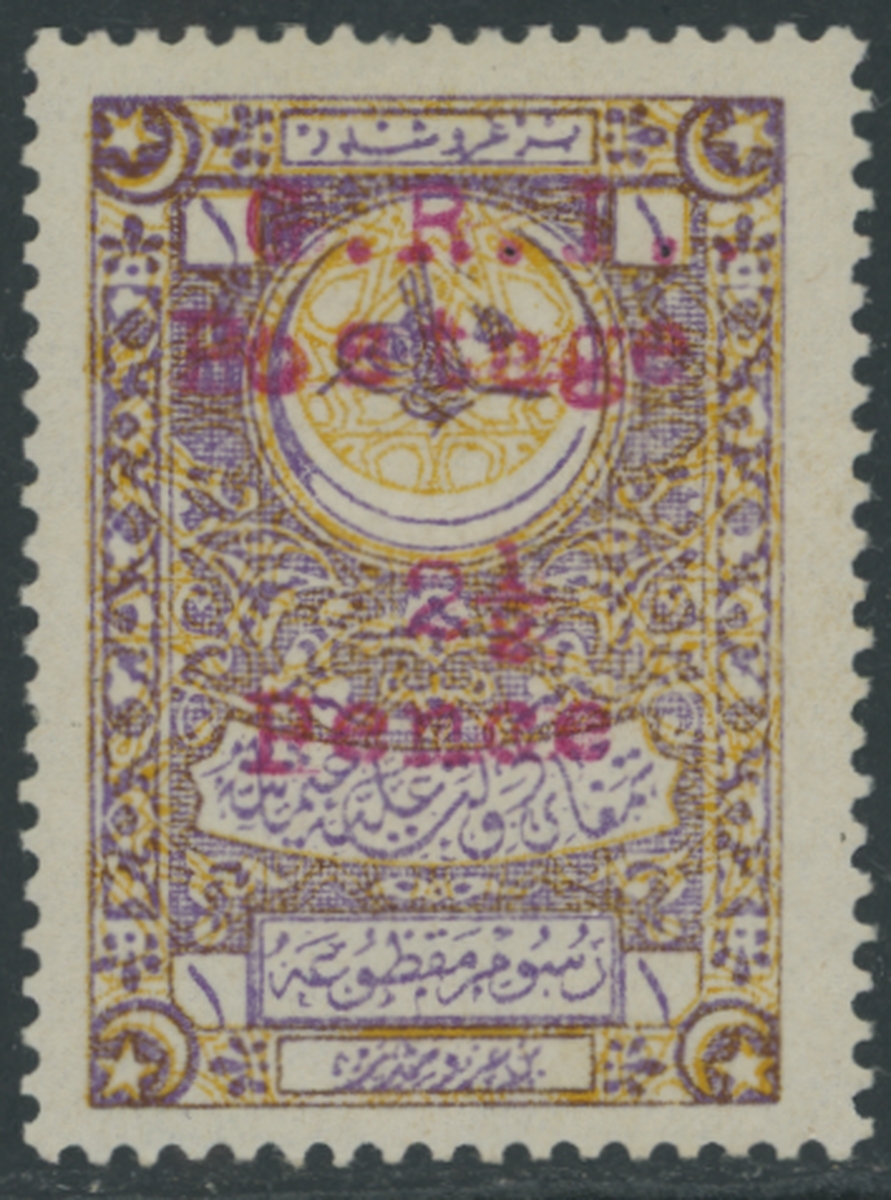 1916 2½pi. on 1pi. violet and buff, original gum, with good colour, tiny pinholes on stops after 'R' and 'I' from typewriter. Just twenty-five were printed, of which thirteen are unused. S.G. 3, £8,000. Photo.