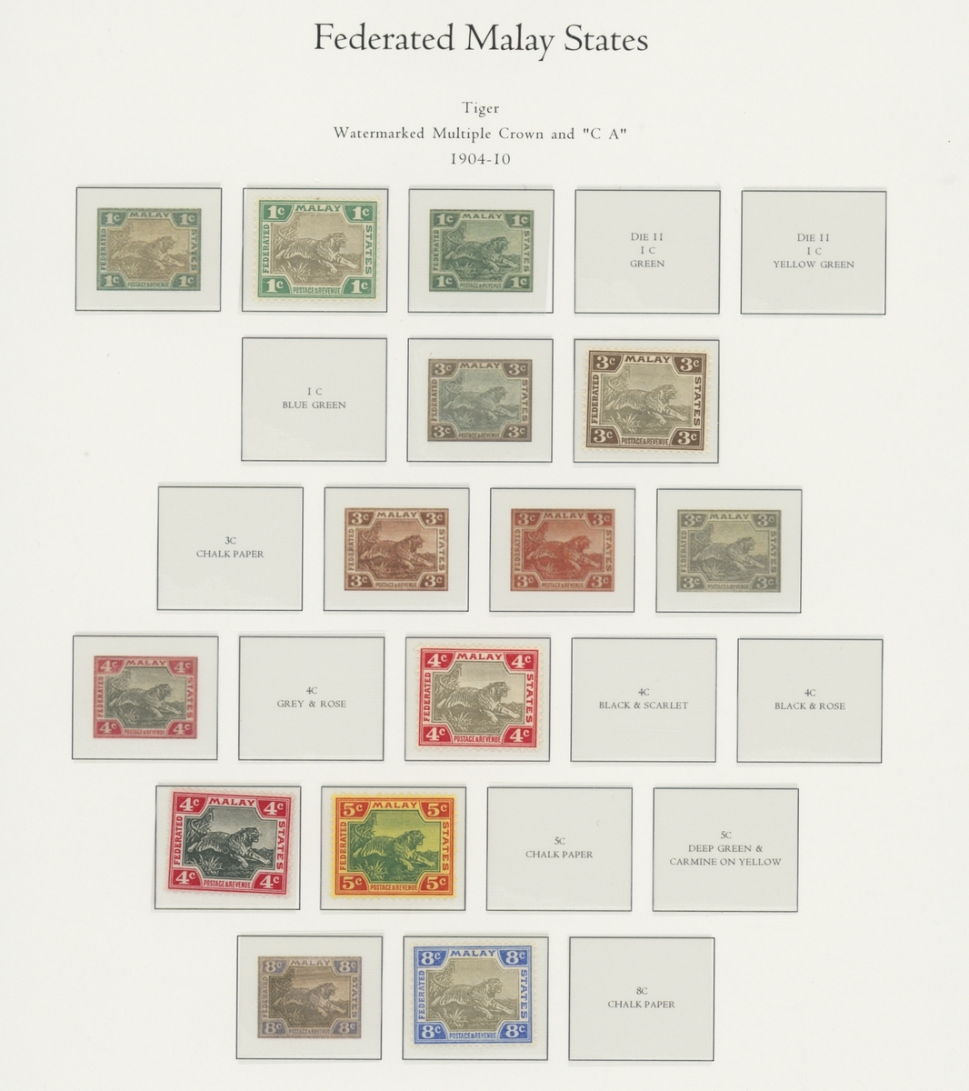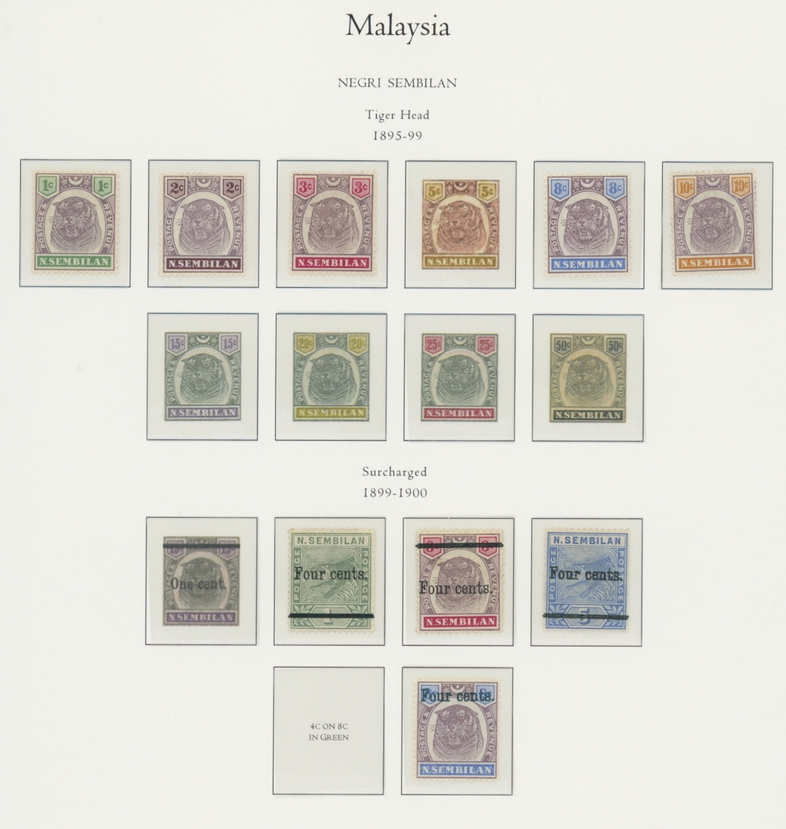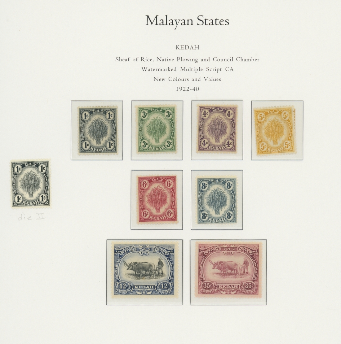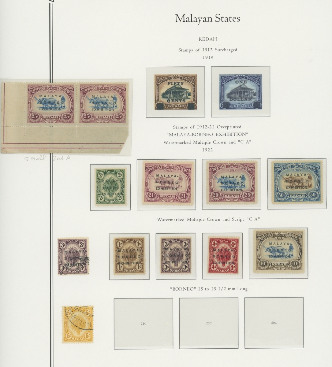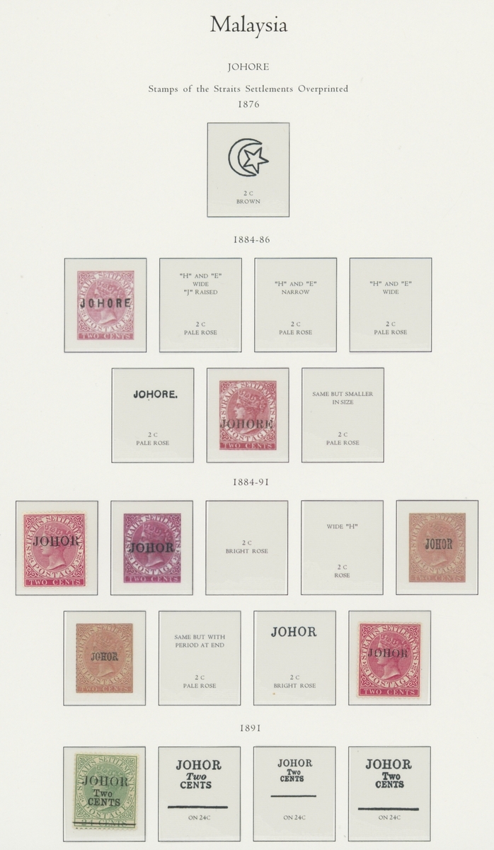 1912-1935 mostly mint collection on album leaves, comprising Straits Settlements, Malayan States and Federated Malay States, including 1912-23 £5 mint and specimen, 1921-33 set to $5, 1936-37 set; Johor 1891-94 set, 1894 surcharges, 1896-99 set, 1922-40 values to $5, 1912-21 set to $2, 1921-32 set less 10c, 1922 Malaya-Borneo Exhibition range; Kelantan 1911-15 set to $5, 1921-28 set; Negri Sembilan 1935-41 set; Pahang 1897 Kuala Lipis 3c. provisional bisected diagonally and tied to small piece, 1935-41 set; Perak range of overprints, 1892-95 set, 1895-99 values to $2, 1935-37 set to $1, plus 1889 officials set to 8c; Selangor 1891-95 set, 1895-99 values to $1, 1935-41 set to $1, plus $2 used; Sungei Ujong 1891-94 set, 1910-19 values to $1, 1921 $5, 1922 Malaya-Borneo Exhibition set to $1, 1921-38 values to $5; 1900 Federated Malay States values to $2, 1922-34 set to $2. A good range, generally good to fine.