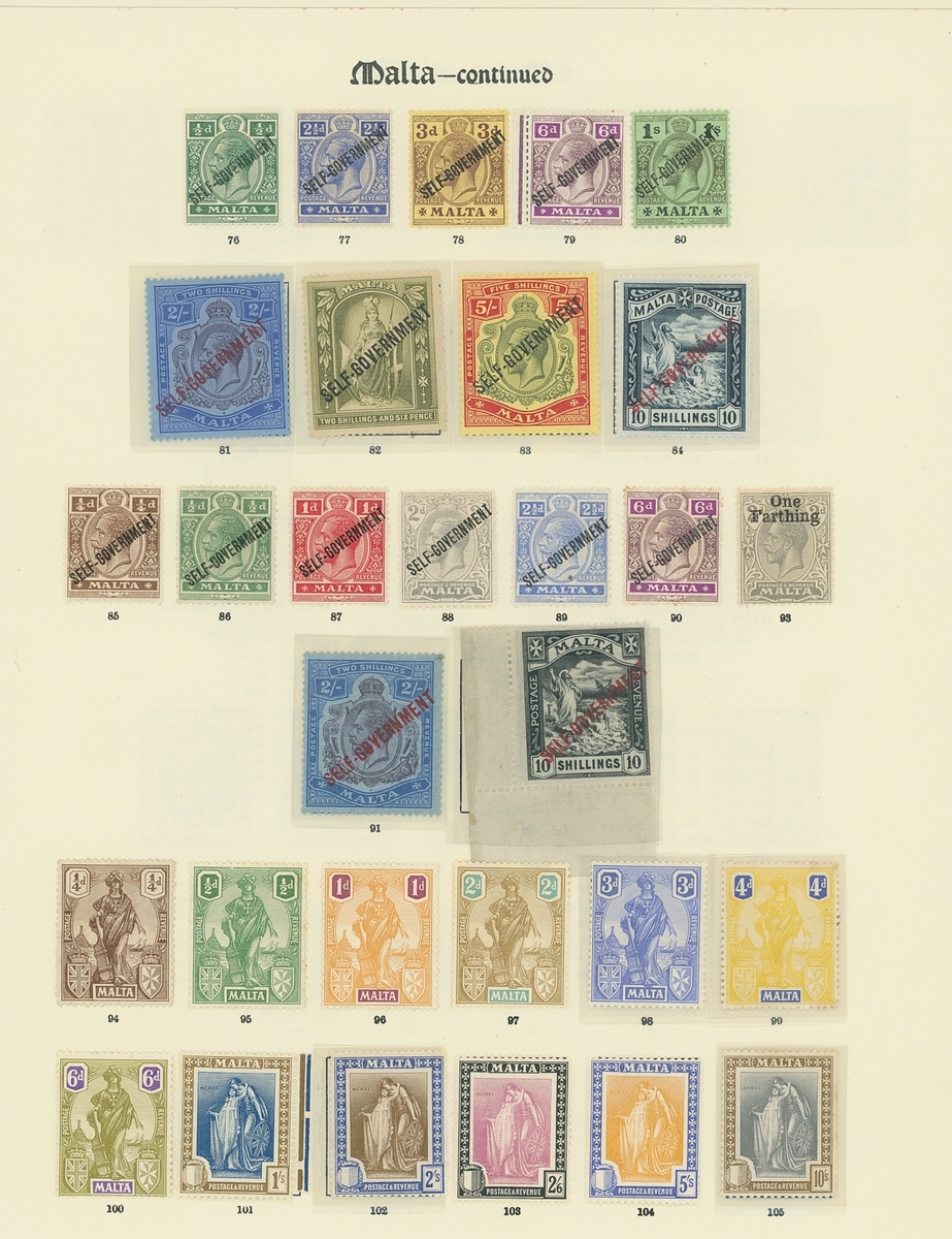 1860-1935 mint collection on album leaves, including 1860 ½d., 1863-81 ½d., 1885-90 set, 1899-1901 set (small mark on 10/-), 1922 (Jan.-Apr.) Self Government set, 1922-26 values to £1 watermark upright, 1926 Postage set (less 5/- used), 1926-27 set, 1928 Postage & Revenue set. Generally good to fine.