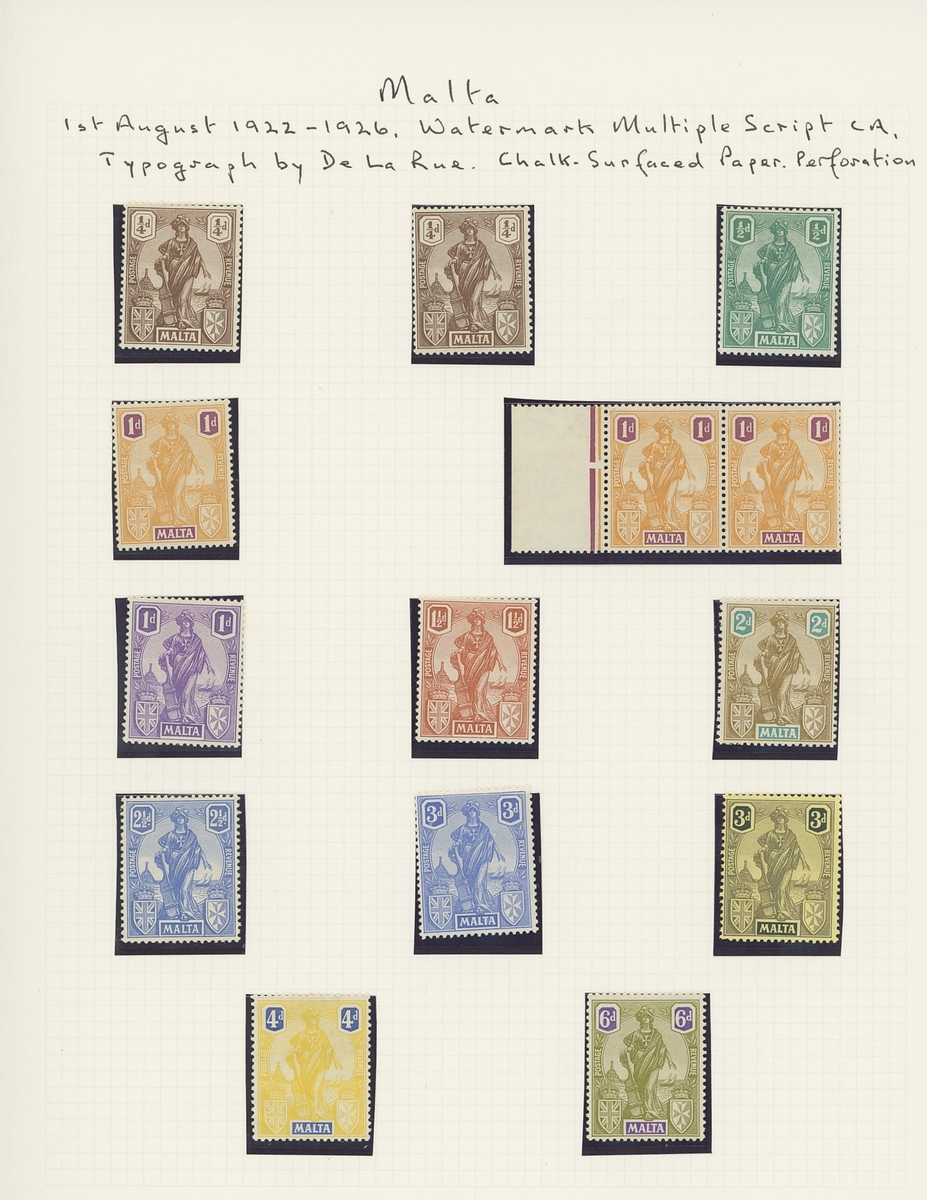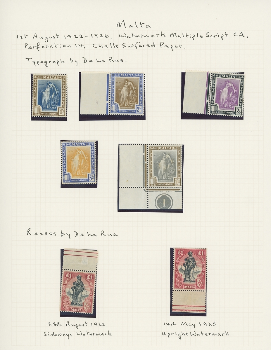 1922-1928 mint selection on album leaves, including 1922-28 set, with 10/- corner marginal plate number, also set overprinted