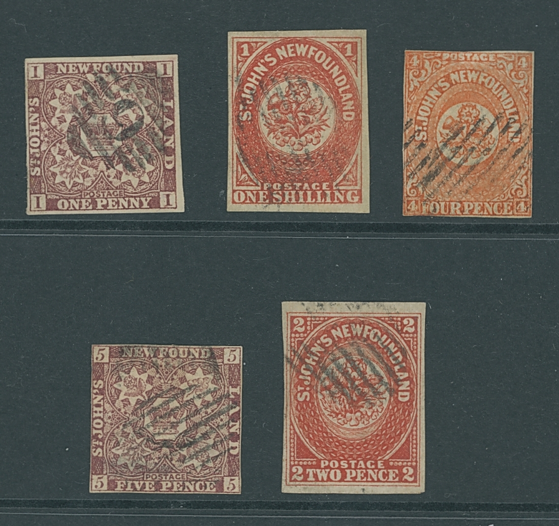 1857-64 used selection (5), comprising 1d., 2d. with B.P.A. cert stating repaired at left, 4d. (close margins), 5d. (faults), 1/- with Brandon cert stating extensively repaired. A useful range. Photo.