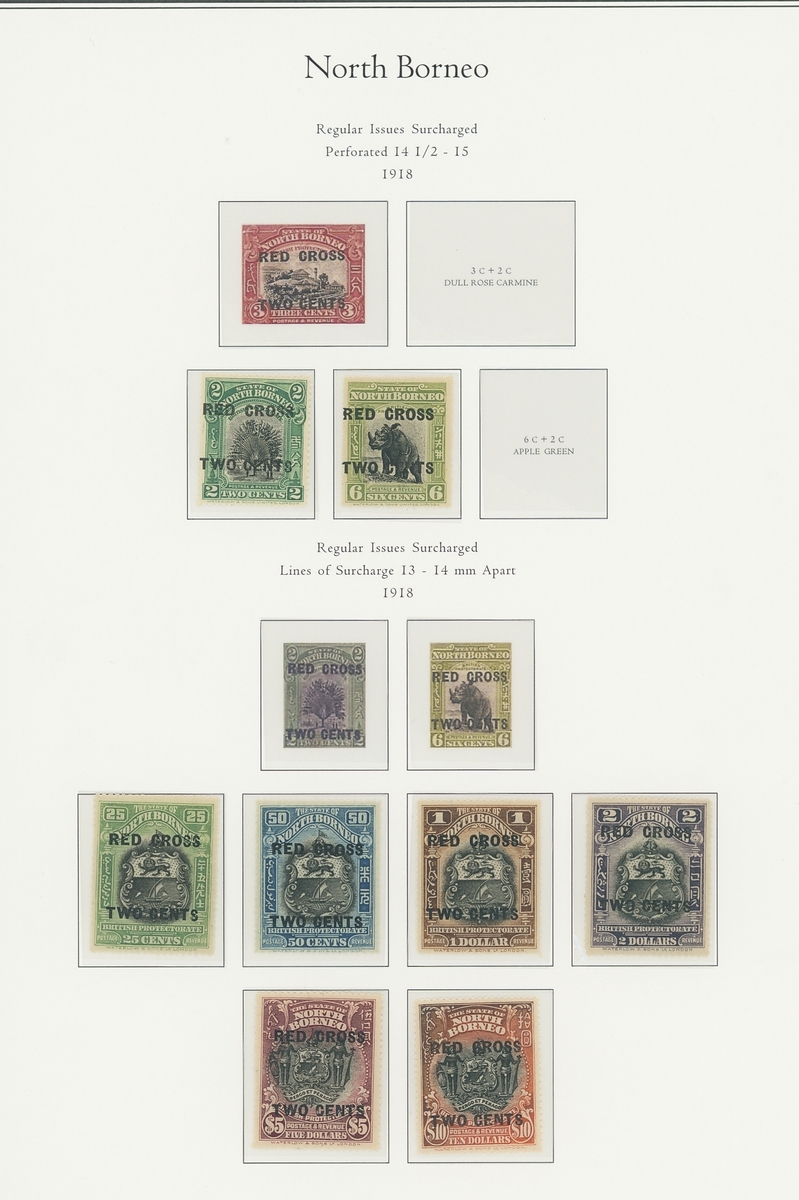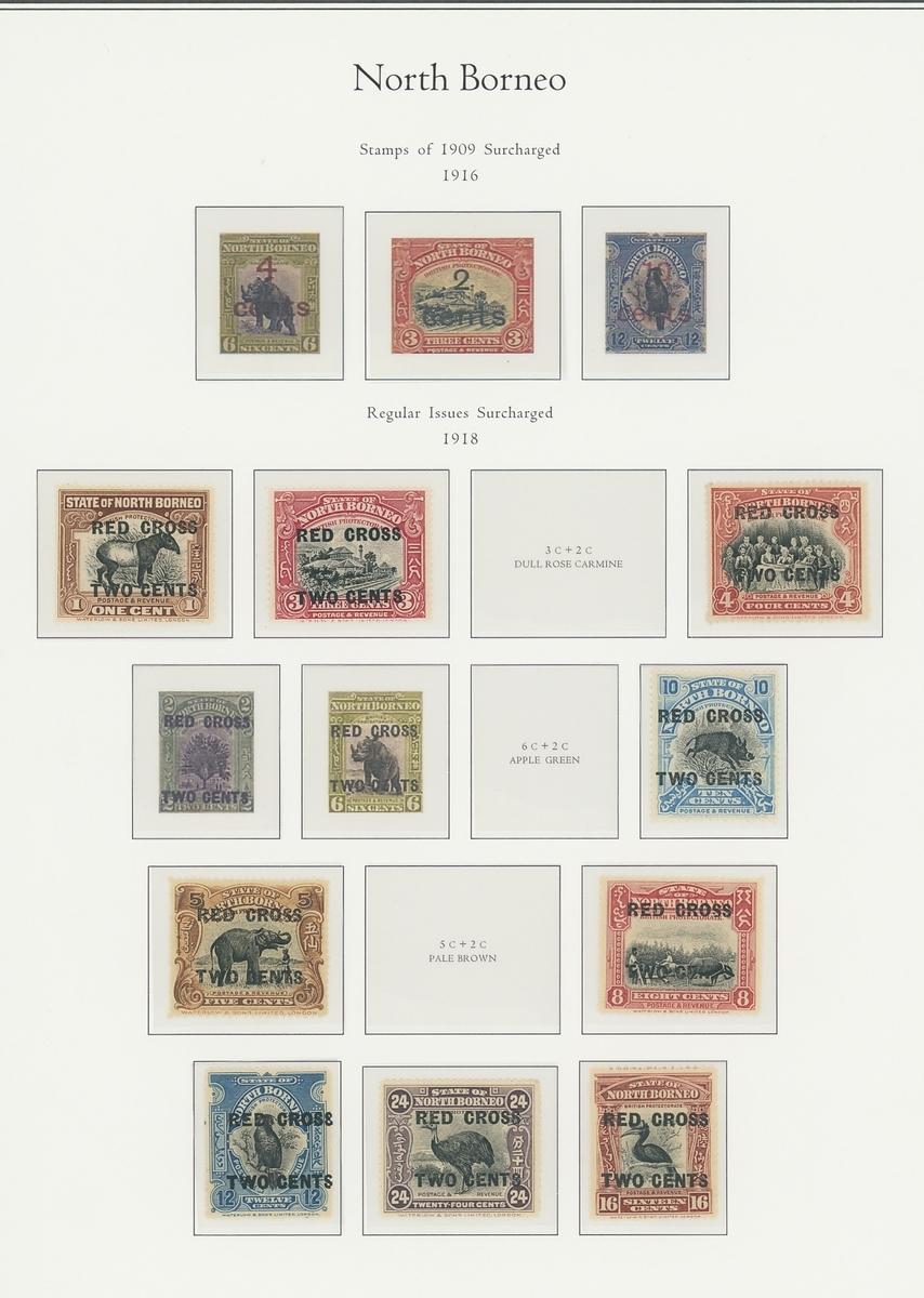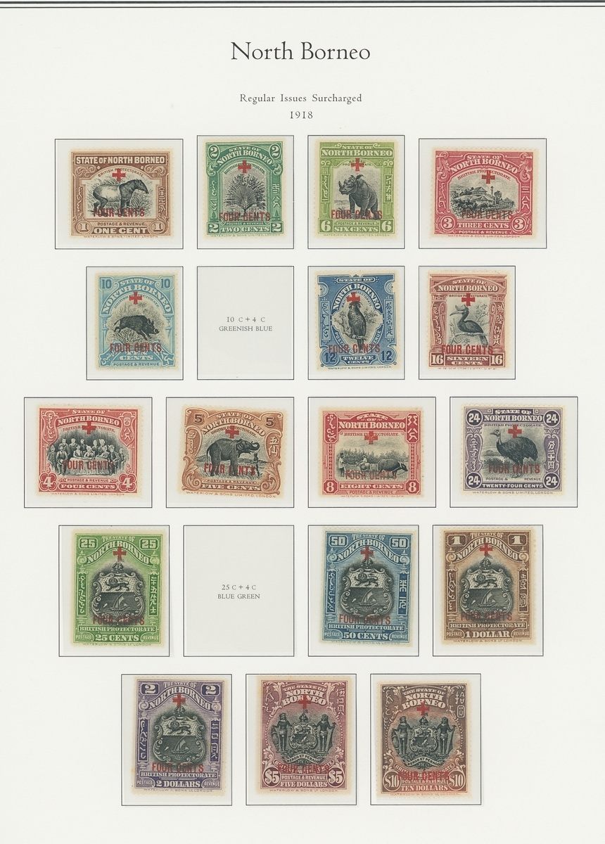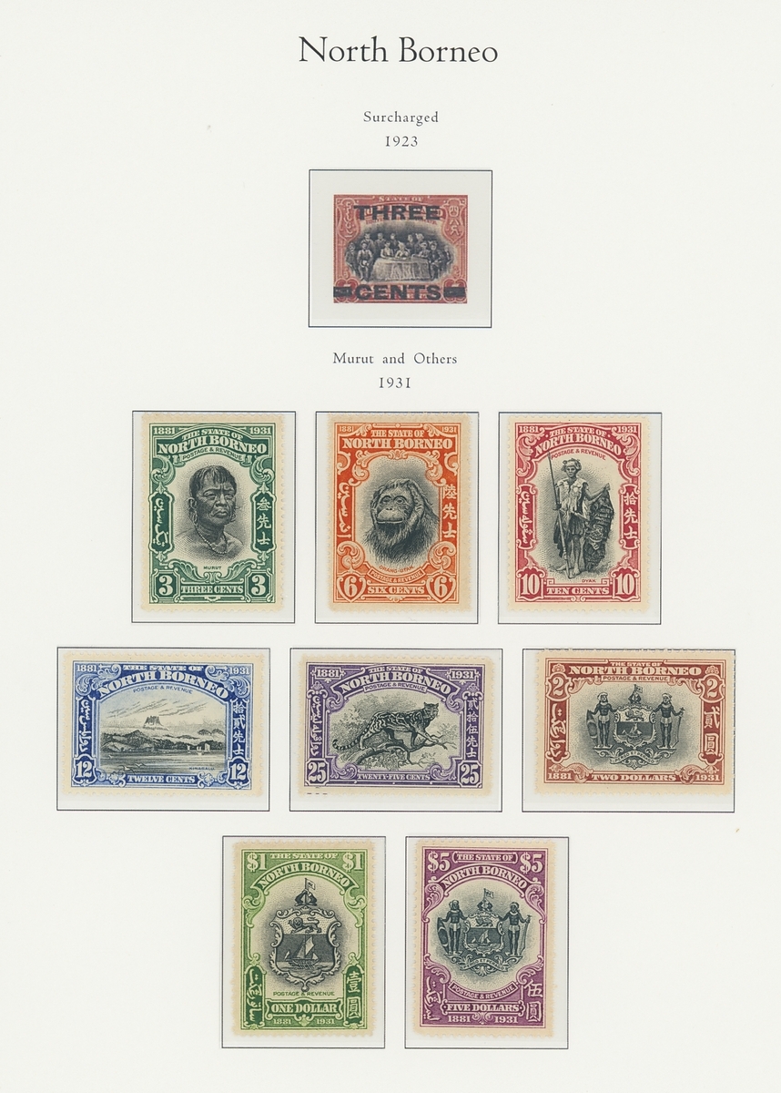 1897-1931 mint collection on album leaves, including 1904-5 set, 1911 set to $5, 1918 (Aug.) Red Cross values to $10, 1918 (Oct.) Red Cross set, 1922 Malaya-Borneo Exhibition set (small tone on the 10c.), 1931 set; Labuan 1902-3 set. Good to fine.
