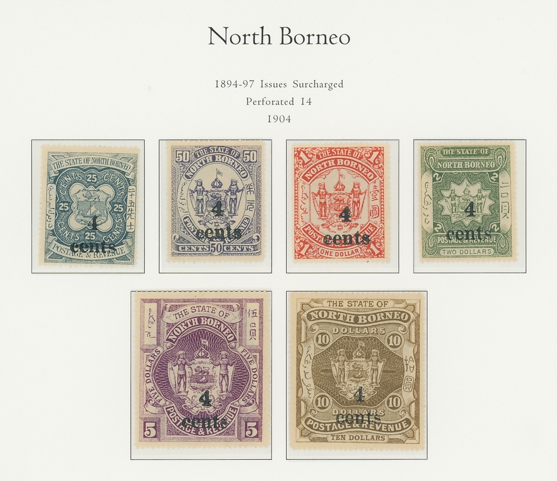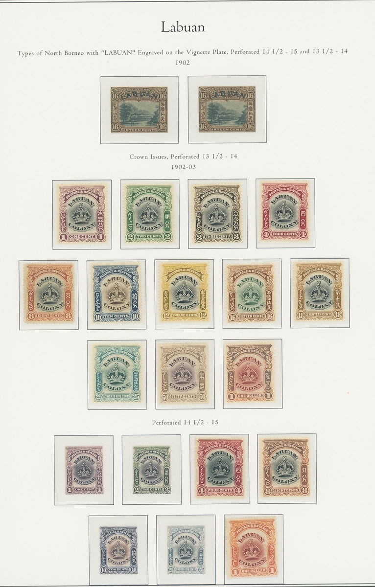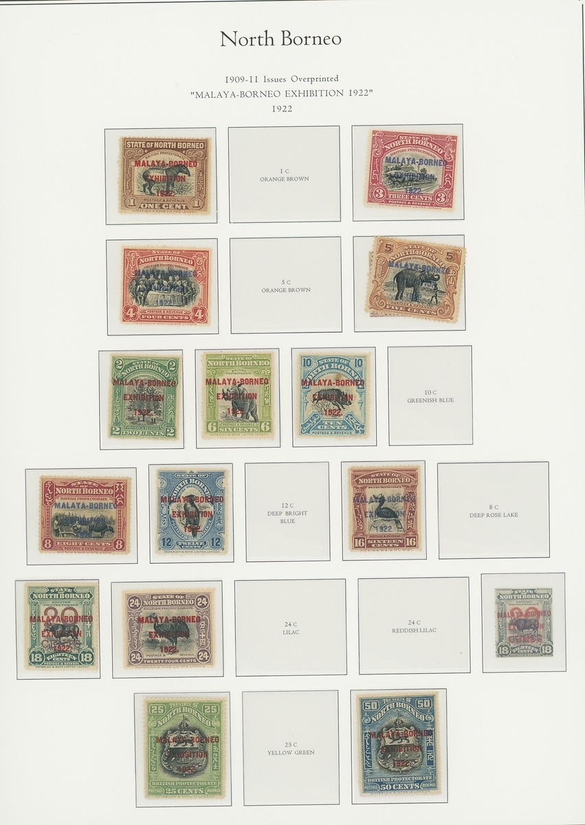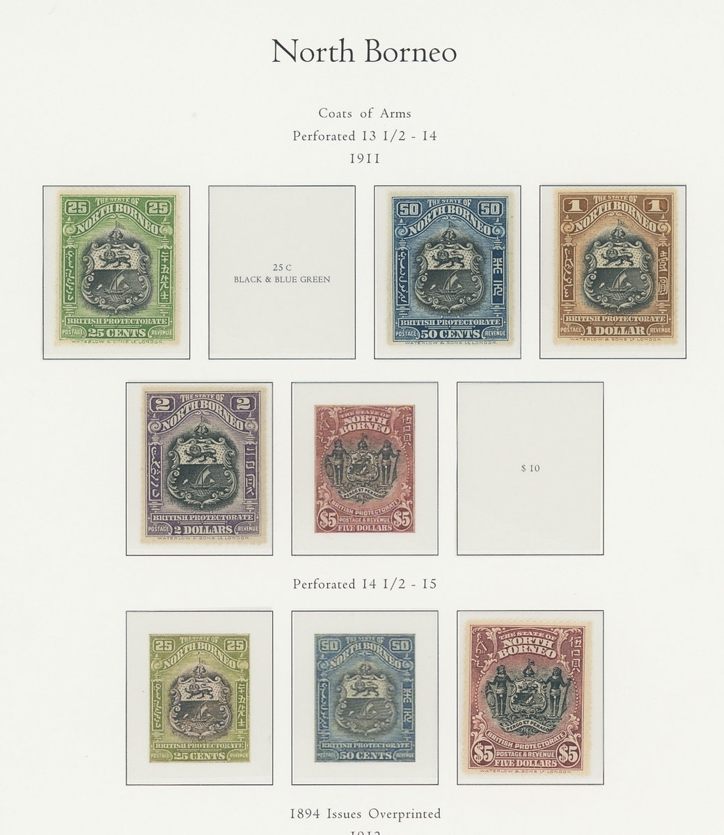 1897-1931 mint collection on album leaves, including 1904-5 set, 1911 set to $5, 1918 (Aug.) Red Cross values to $10, 1918 (Oct.) Red Cross set, 1922 Malaya-Borneo Exhibition set (small tone on the 10c.), 1931 set; Labuan 1902-3 set. Good to fine.