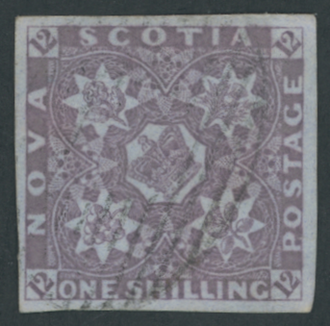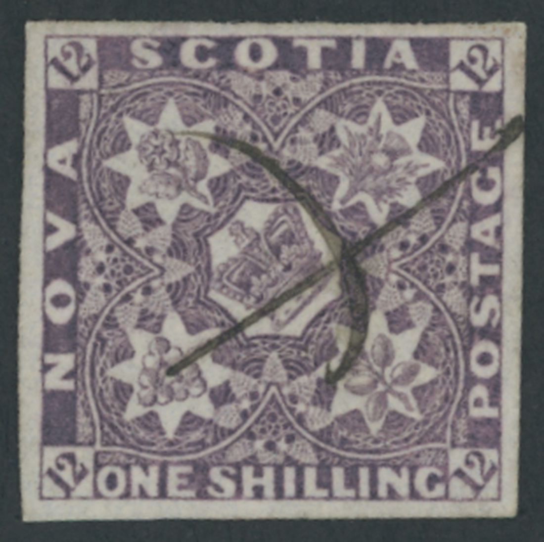 1851-60 1/-, two shades, cold violet and purple, used, one with pen cancel, the other with light barred oval, both with Vincent Graves Greene certs, the former with tear and slight corner crease. S.G.7-8, £12,250. Photo.