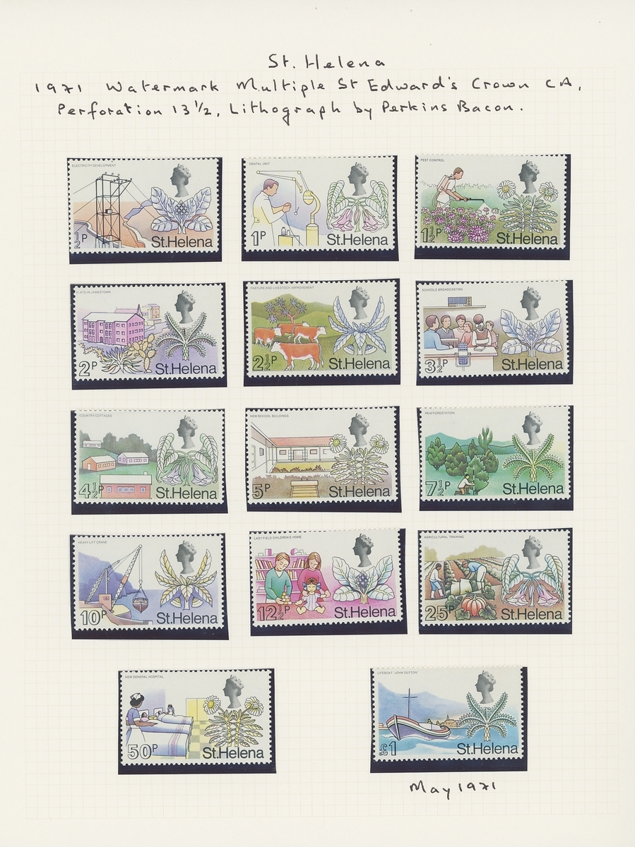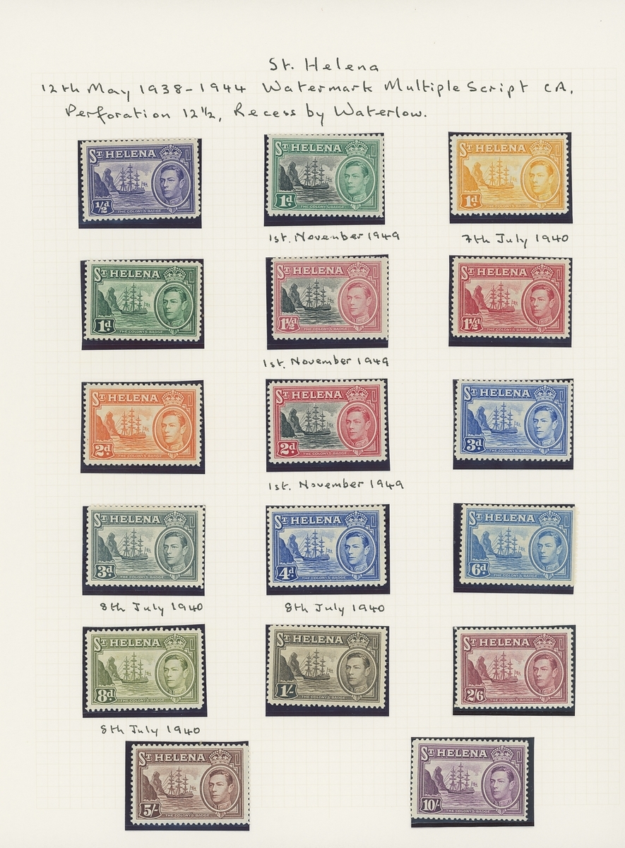 1912-1971 mint selection on album leaves, comprising 1912-16 set to 3/-, 1938-44 set to 10/-, with additional printings, 1948 Royal Silver Wedding set in blocks of four, 1953-59 set, 1961 set and 1971 set. Chiefly fine and unmounted mint from 1938.