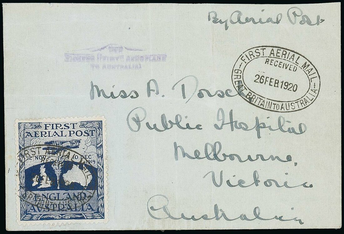 1920 (26 Feb.) Ross Smith flight envelope to Melbourne, bearing blue vignette tied by