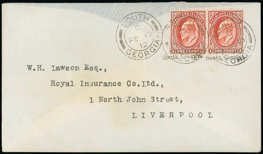 1912 (13 Feb.) Lawson envelope to Bristol bearing 1904-12 1d. pair with two strikes of the Heijtz SGU2