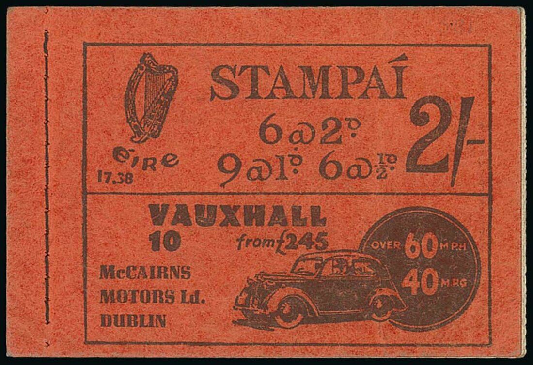 1931-40 2/- complete booklet, black on red cover (Type B2), Edition No. 17.38, cover slightly creased otherwise fine and rare. S.G. SB1, £4,000. Photo