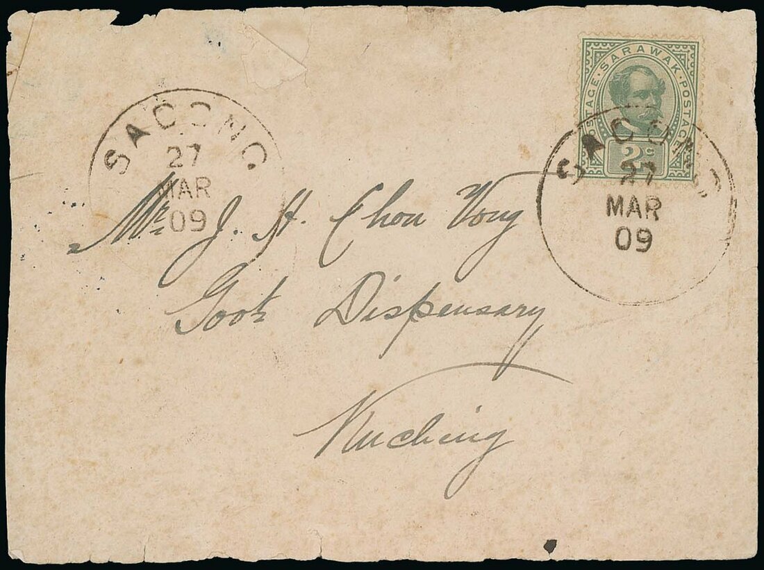 1909 envelope to Kuching bearing 2c tied by