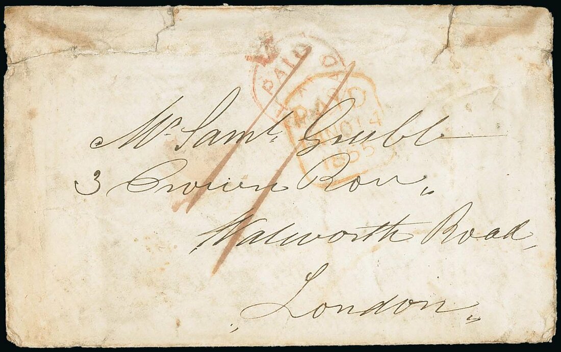 1855 (16 Oct.) envelope with two enclosures to London with a good strike of the red Crowned circle "