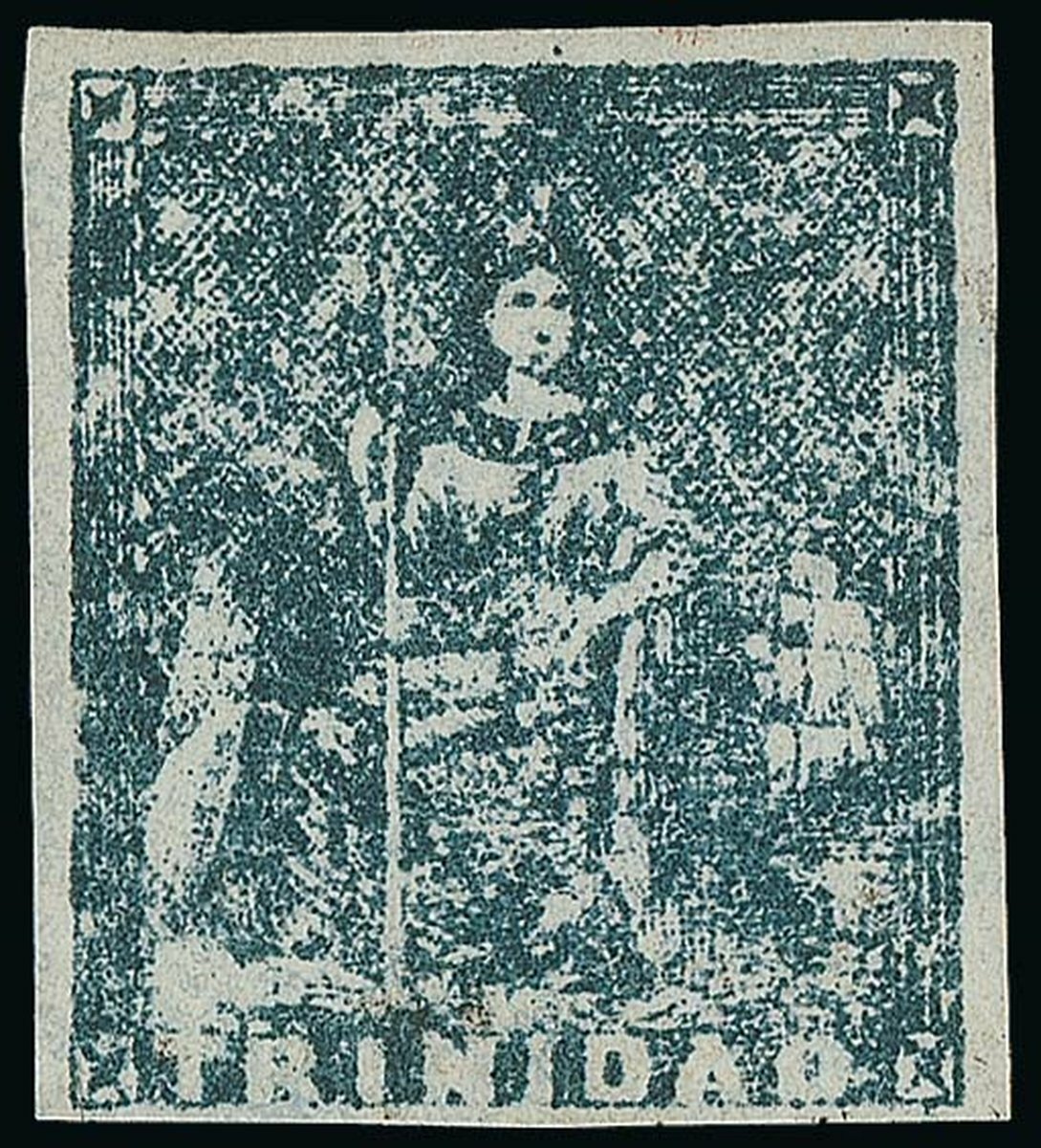 Note: Most of the great Trinidad collections did not have an unused example of the lithographed 1d. from any printing. This must be considered one of the finest examples known.