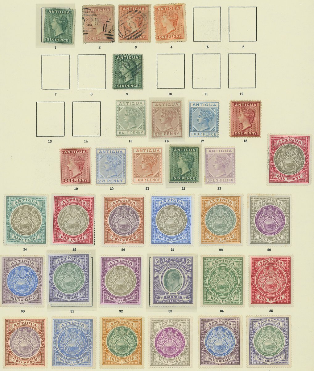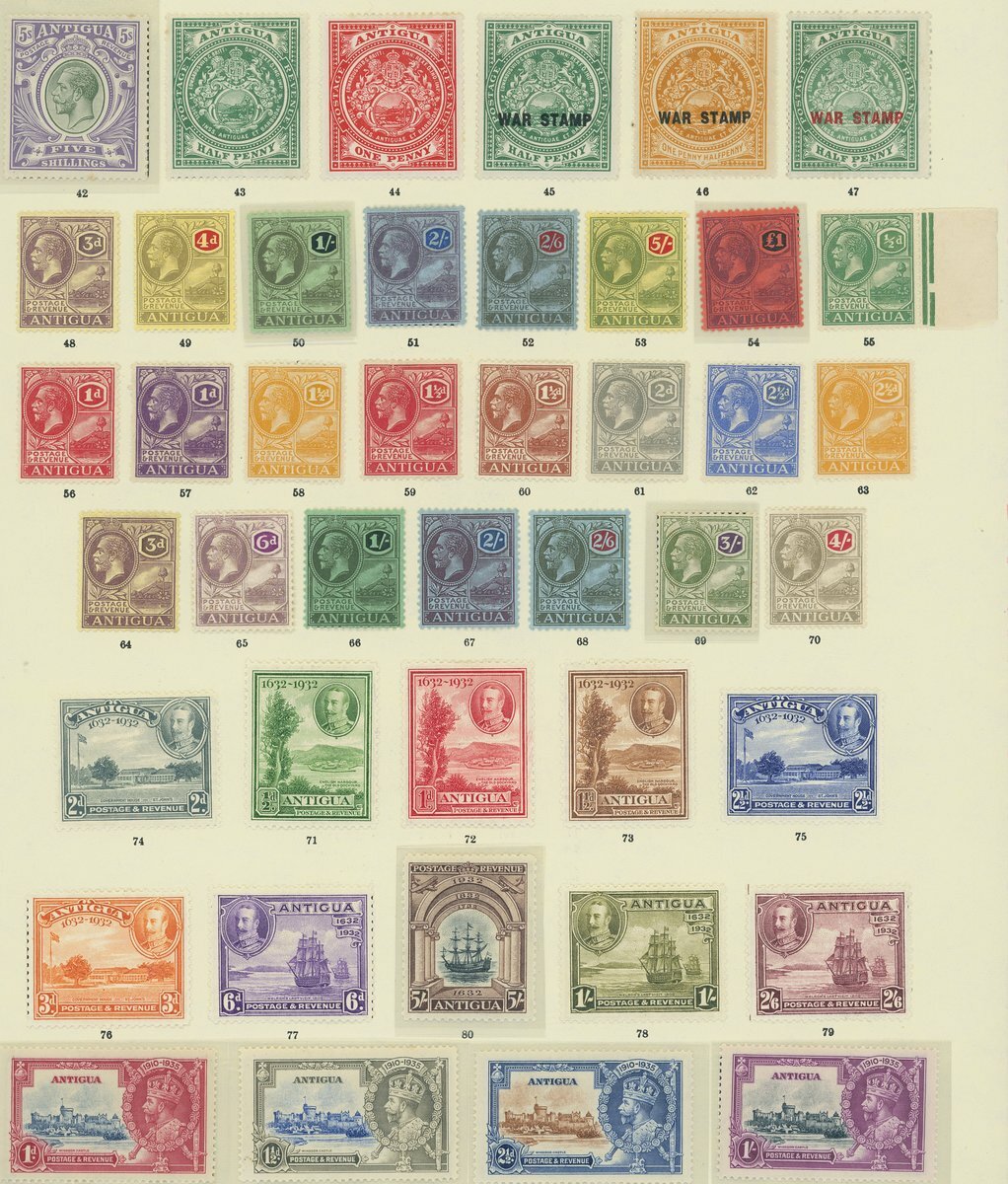 1862-1935 mainly mint collection on two album pages including 1862 no wmk 6d. blue-green, 1863-67 1d. used (2) and mint and 6d. used, 1882 CA ½d., 2½. and 4d., 1884-87 CA 1d. to 1/- set of five, 1903-07 CA set to 5/-, 1908-17 MCA set to 5/-, War Stamps, 1921-29 MCA set to £1 and Script set to 4/-, 1932 set to 5/- and 1935 Silver Jubilee also 1922 Barbuda set; good to fine mint. S.G. £3,000+