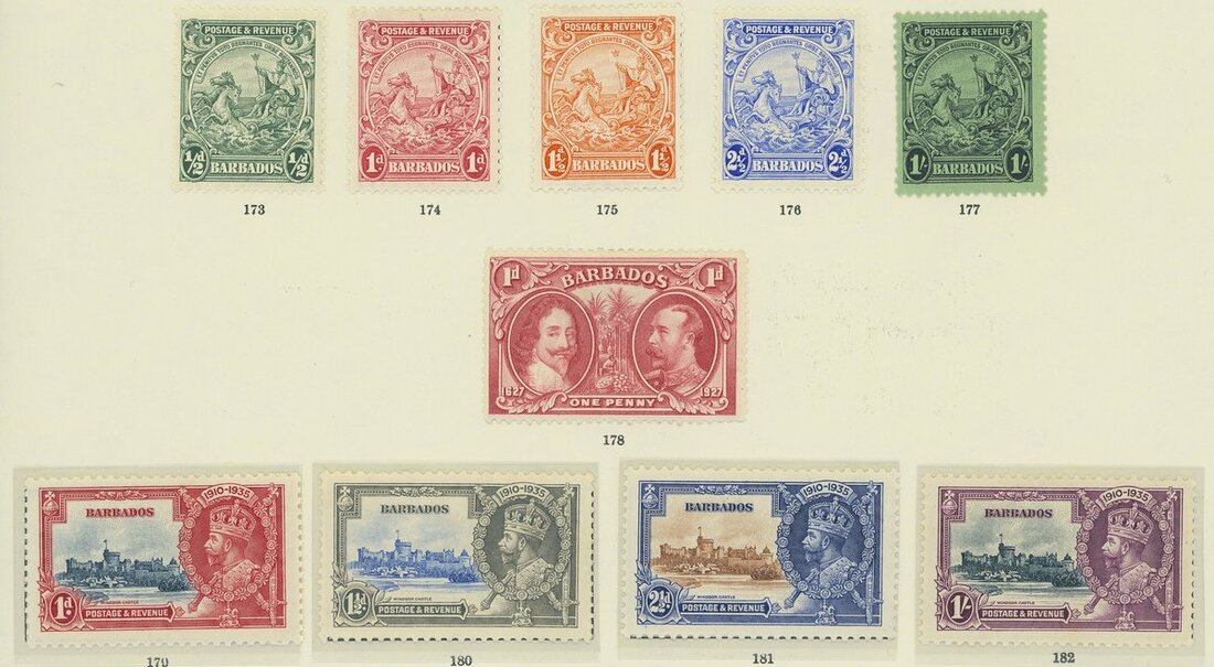 1852-1935 mainly mint collection on album pages including 1852-55 (1d.) blue used, 1861-70 (½d.) green mint (2) and (1d) blue used (2), later Britannia issues both mint and used, from thereon mint comprising 1882-86 CA set to 5/-, 1892 ½d. surcharges, 1892 Seal of Colony set to 2/6d., 1897 Jubilee set to 2/6d., 1905 CA set to 2/6d., 1906 Nelson Centenary set to 1/-, 1912-16 set to 3/-, 1916-19 set to 3/-, 1920-21 set to 3/-, 1921-24 set to 3/-, Silver Jubilee etc., good to fine mint. S.G. £3,000+