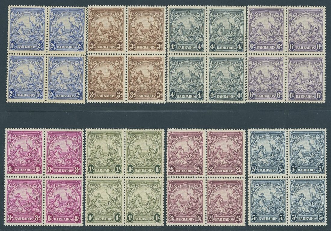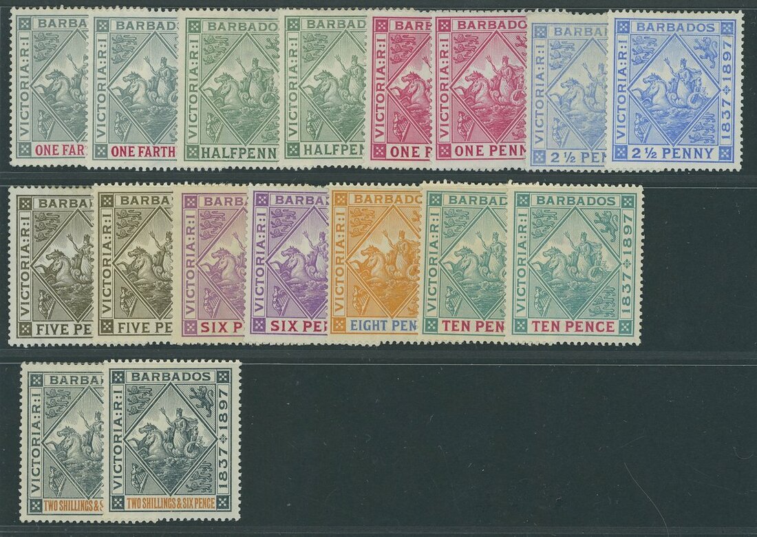 1897-1947 mint group on stockcards comprising 1897-98 set to 2/6d. with two of each value for all but the 8d., also blued paper group of the same issue (5) with ¼d., ½d.. (2), 1d. and 2½d. and 1938-47 set of twelve to 5/- with each value in a block of four; fine and fresh mint. S.G. 116-128 group and 248c-256a, £1,000+