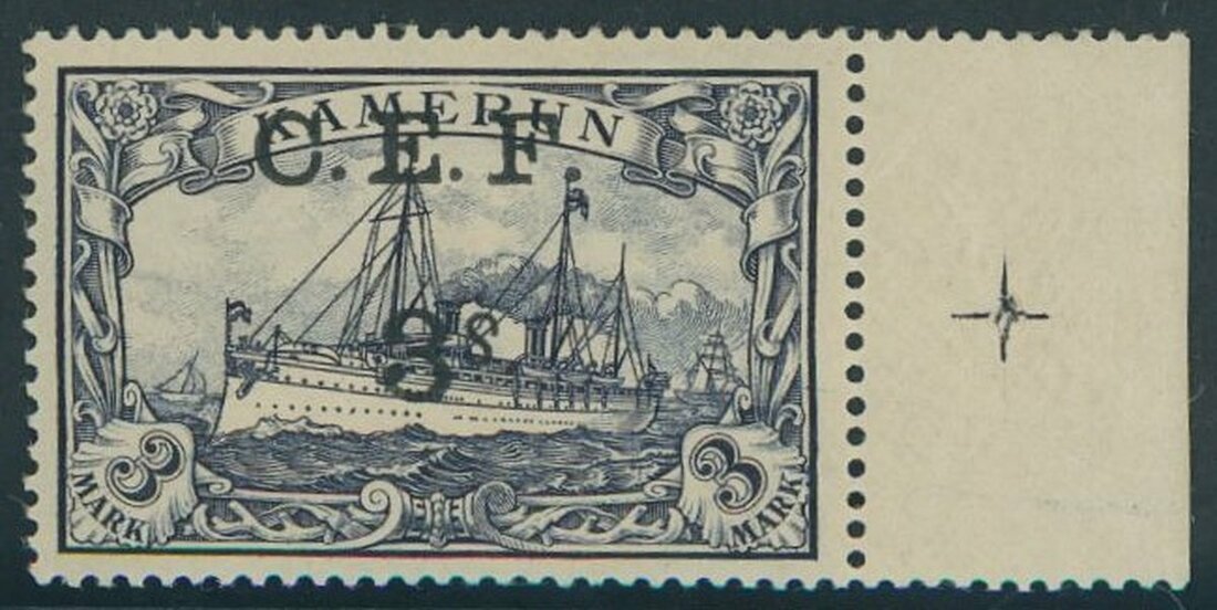 3/- on 3m. violet-black, a marginal example from the right of the sheet, variety inverted