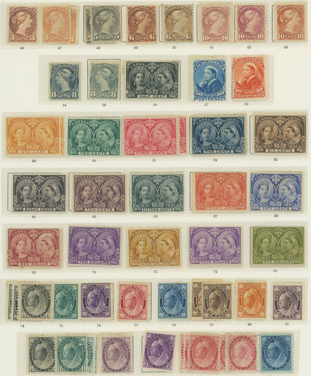1851-1935 mint collection including 1851 3d. red used with light pen cancellation (APS Cert.) and an unused 3d. pair of a later printing, 1859 perf. 121c. and 5c. mint, a good range of Large and Small Queen's heads, 1897 Jubilee set to $5, 1897-98 set to 10c., all sets then complete to 1935 and with Registration, Special Delivery and Postage Dues, Newfoundland with some early issues to 1/- and most complete sets to 1935 including Airmails etc. good to fine