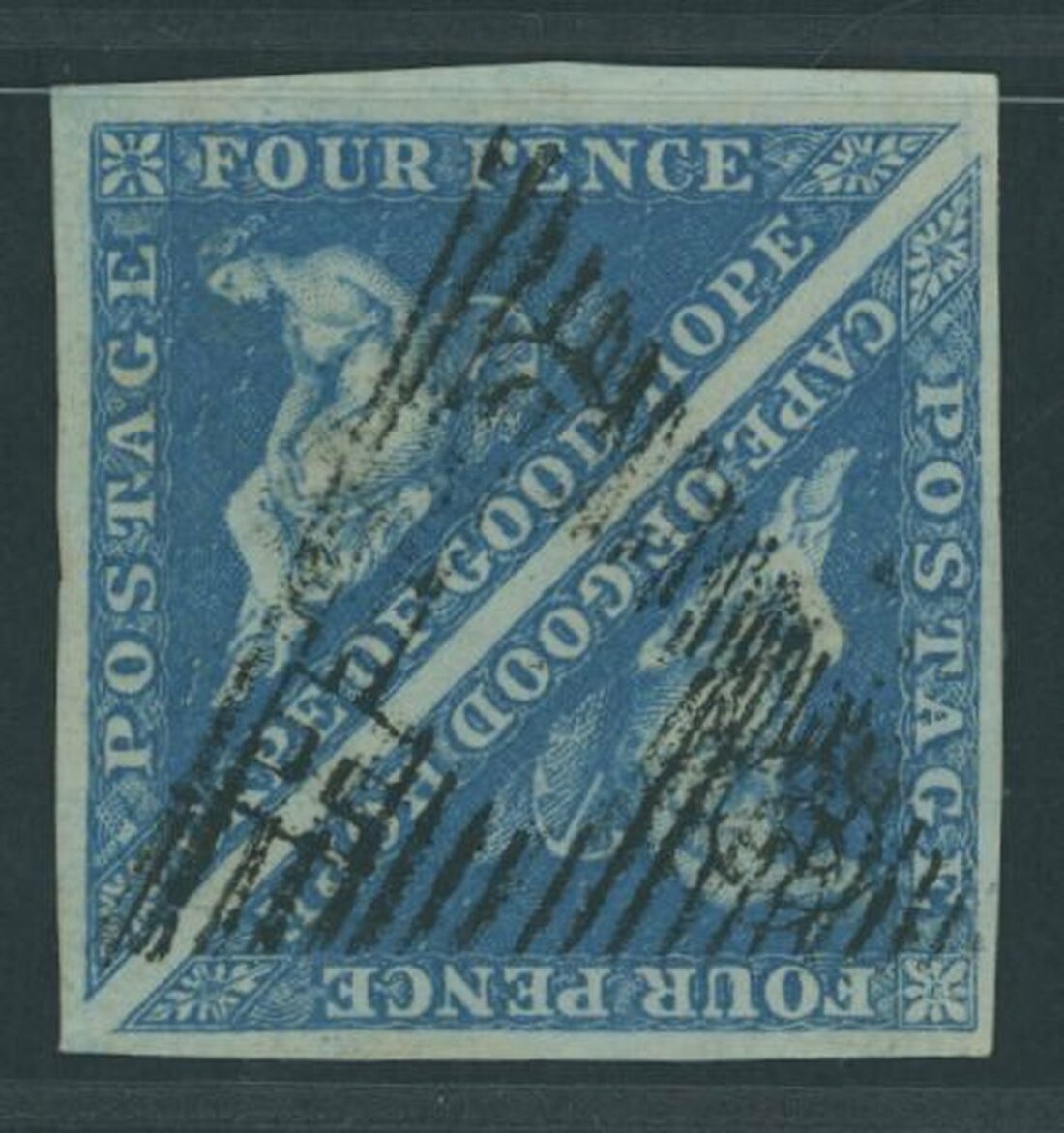 4d. deep blue, a pair with good to large margins and a single light triangular cancellation; fine. Brandon Certificate (2002). S.G. 2