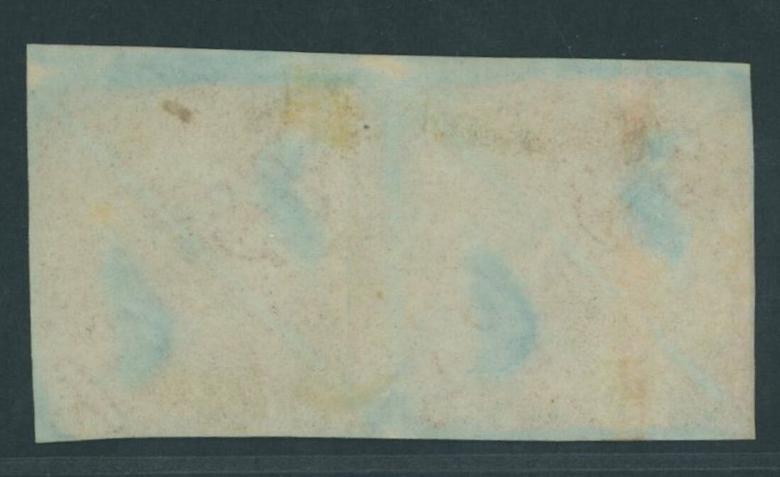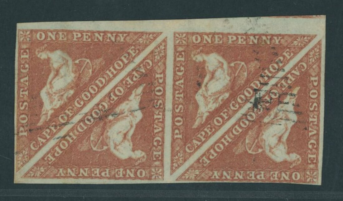 1d. brick-red, a block of four with clear to very large margins and a portion of the adjoining stamp visible at upper right, very lightly cancelled by two part triangular cancellations, some faint soiling otherwise fine and a scarce multiple. S.G. 3