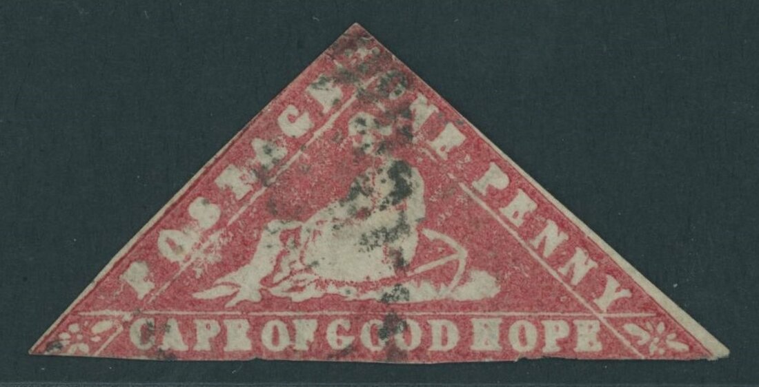 1d. vermilion, part margin on two sides and cut-into design slightly elsewhere; light triangular cancellation, fine and bright colour. Knopfe Certificate (2008). S.G. 13, £3,250