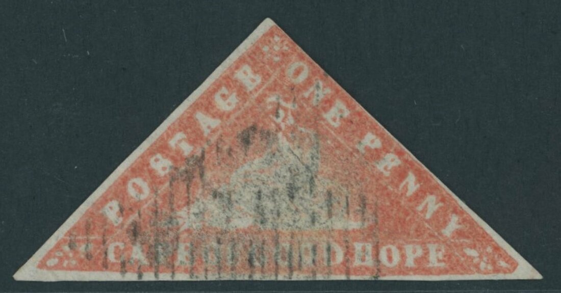1d. brick-red, good margins on two sides and just touching the design at upper-right, cancelled by slightly smudged triangular obliteration; good colour. R.P.S. Certificate (1956). S.G. 13b, £5,000