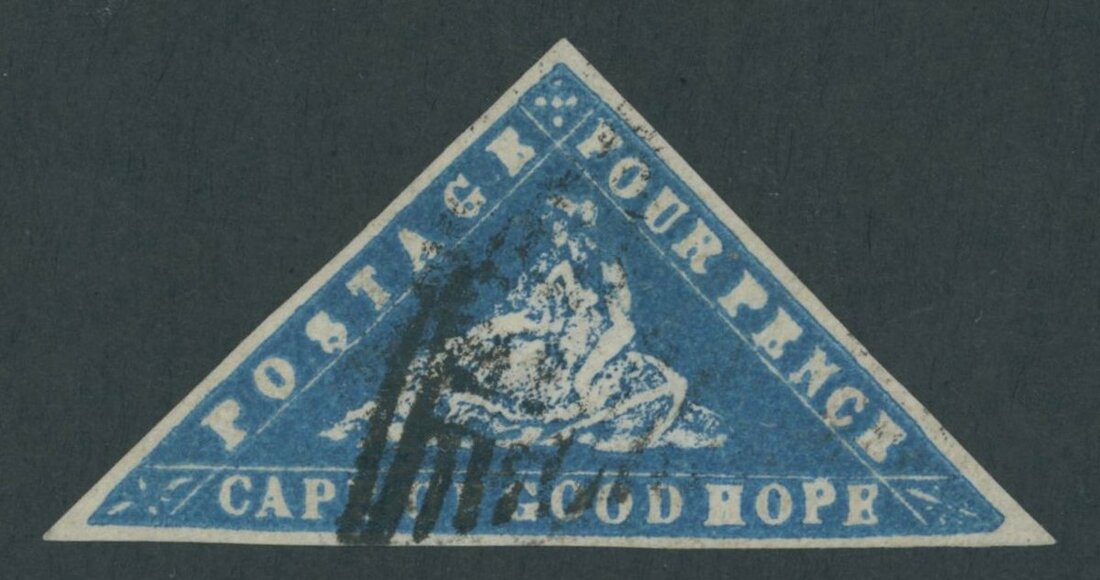 4d. deep bright blue, large balanced margins and with a beautiful deep colour; lightly cancelled leaving most of the design clear; a very fine example of this rare stamp. Holcombe (1986) and Brandon (2013) Certificates. S.G. 14c, £5,500