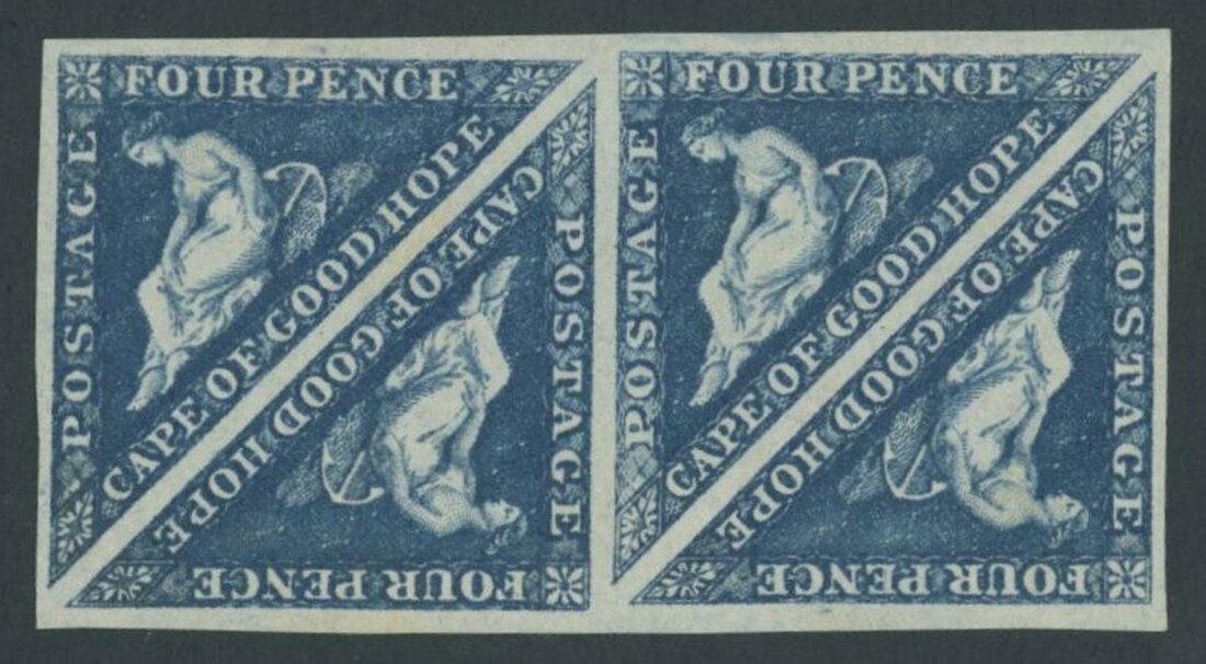 4d. deep blue, a triangular block of four with large balanced margins; large part original gum, very fine. S.G. 19