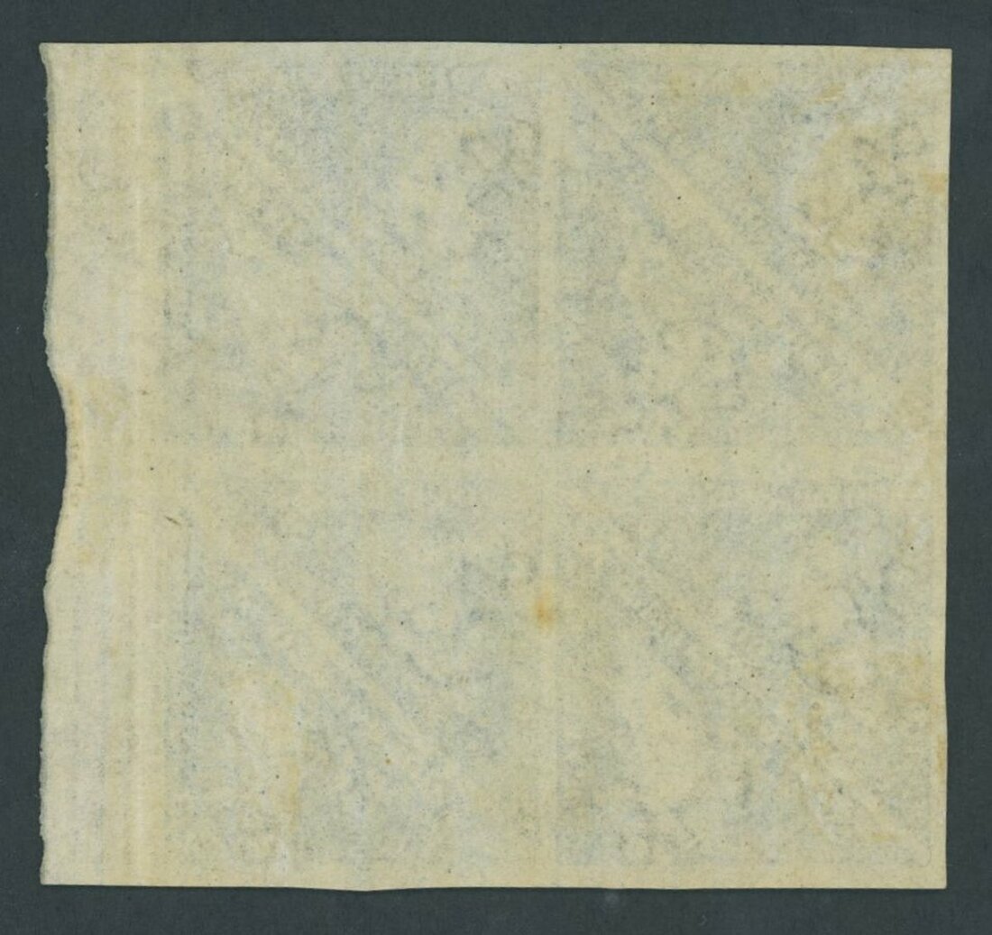 4d. blue, a block of eight from the left of the sheet; some faint tone spots on the reverse, large part original gum, a rare large multiple of this shade. S.G. 19a