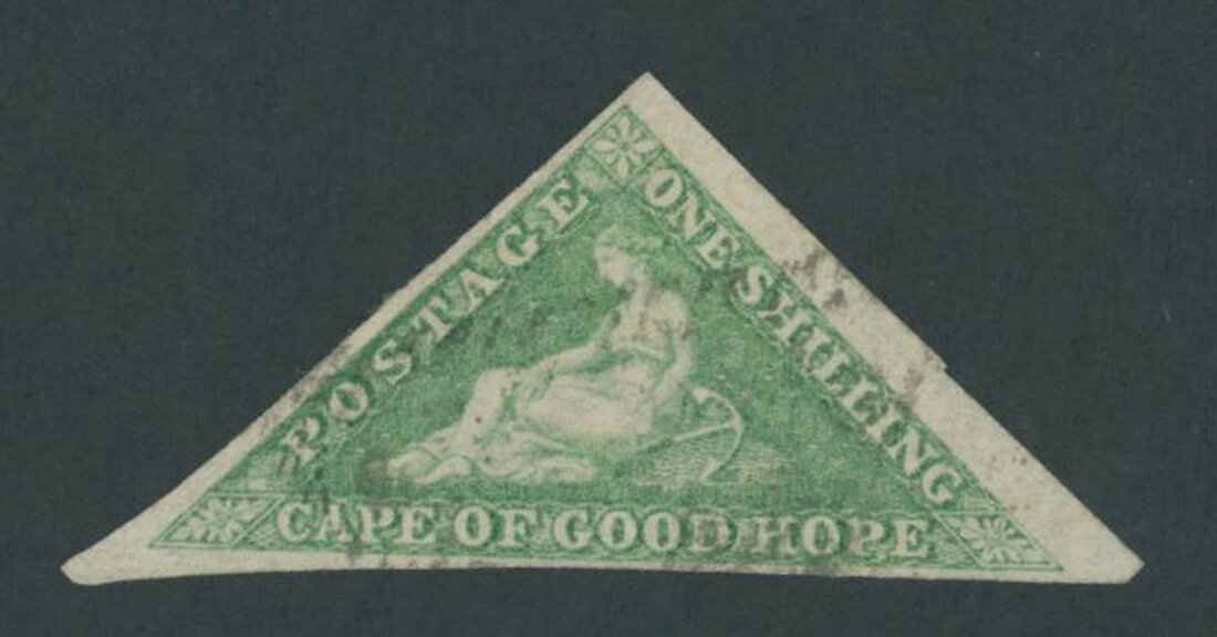 1/- bright emerald green, clear to very large margins and light cancellation; fine and fresh. S.G. 21
