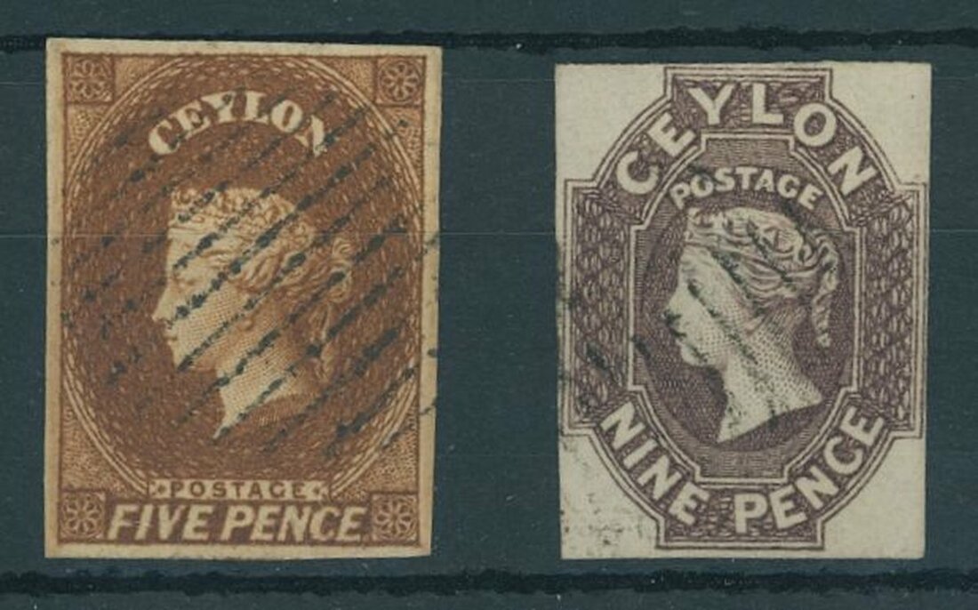 1857-59 Watermark Star 5d. chestnut and 9d. purple-brown, both lightly used and with clear margins; generally good to fine. S.G. 5, 8, £1,180