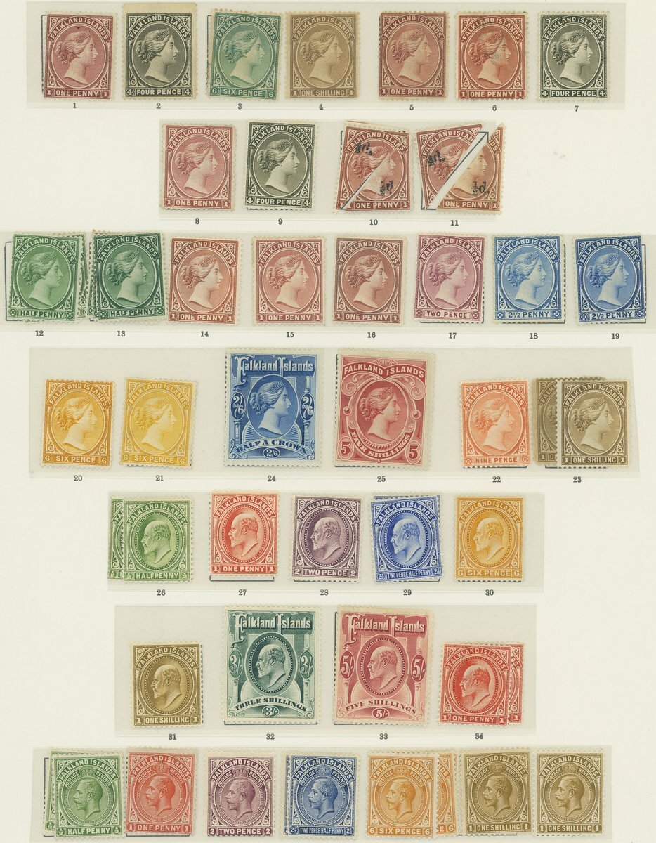1878-1935 mint collection on album pages including 1878-79 no wmk 1d. to 1/- set of four, 1882 CA 1d. and 4d., 1885-91 MCA 1d. and 4d., 1891 ½d. on half 1d. bisects, 1891-1902 set to 1/-, 1898 2/6d. and 5/-, 1904-12 MCA set to 5/- both issued and overprinted