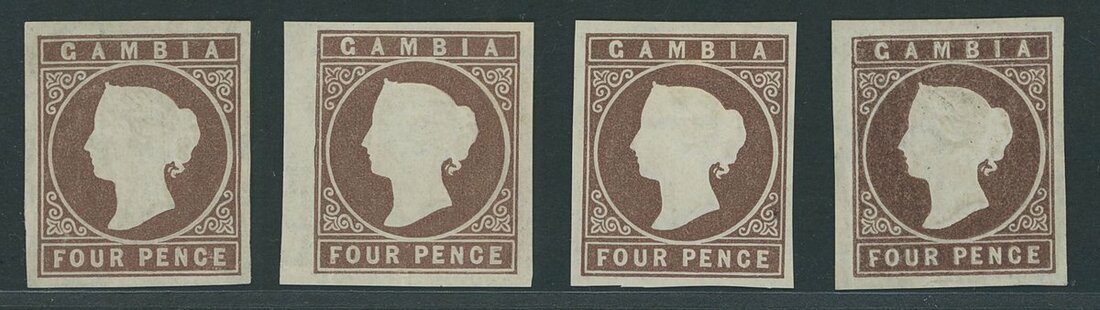 1869-70 CC mint group (8) comprising 4d. brown (6, shades) all with four margins and five with part to large part original gum and one without gum; also 6d. deep blue horizontal pair with good to large margins, R.P.S. Cert for the 6d. pair; fine. S.G. 5-7 £3,000+