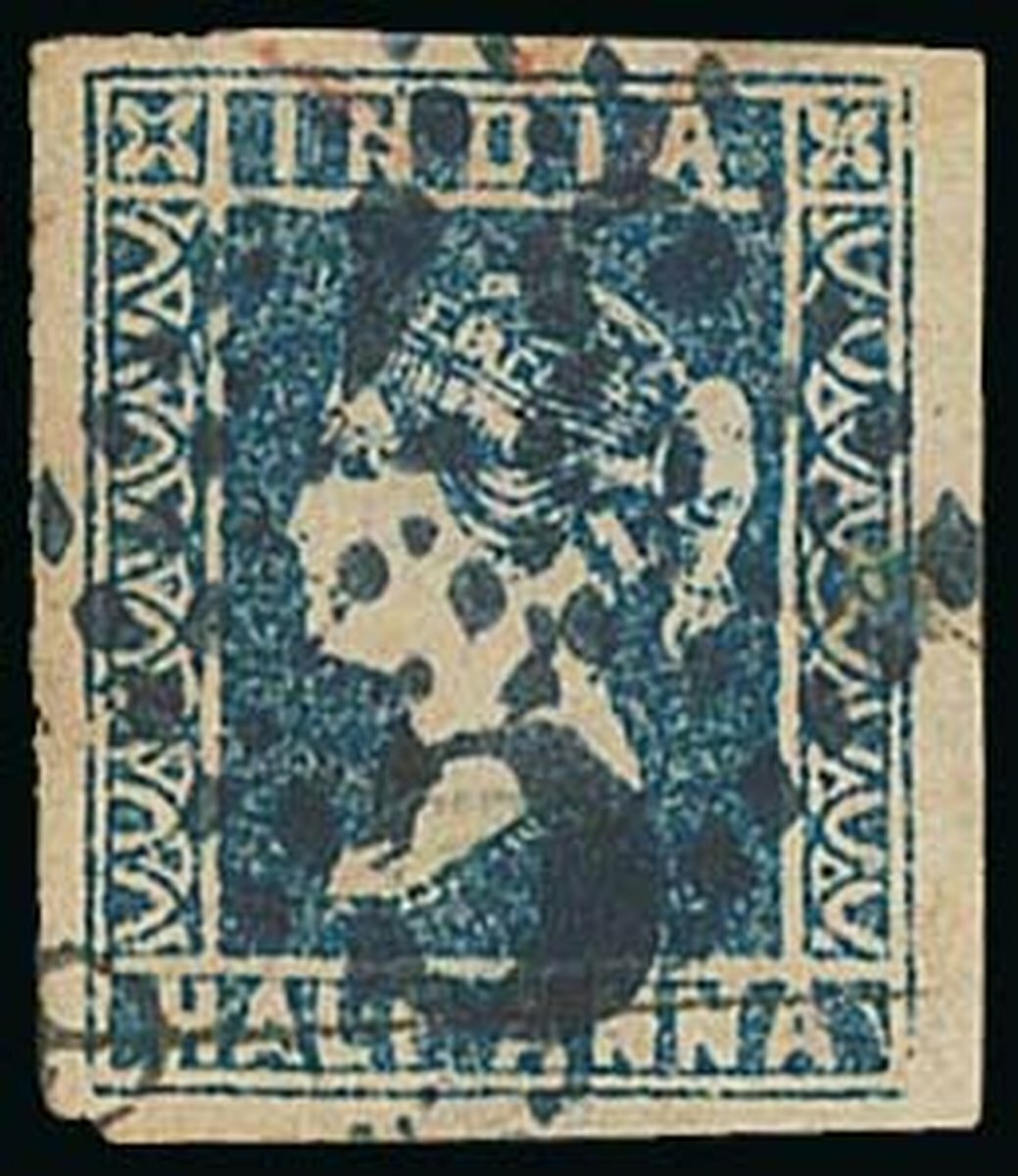 1854 used group (5) comprising ½a. blue (4) with Die I, Die II (2) and Die III all with clear to good margins and 4a. blue and red, Head Die III, Frame Die II, cut square and with light cancellation; good to fine. S.G. 2-10 group and 23