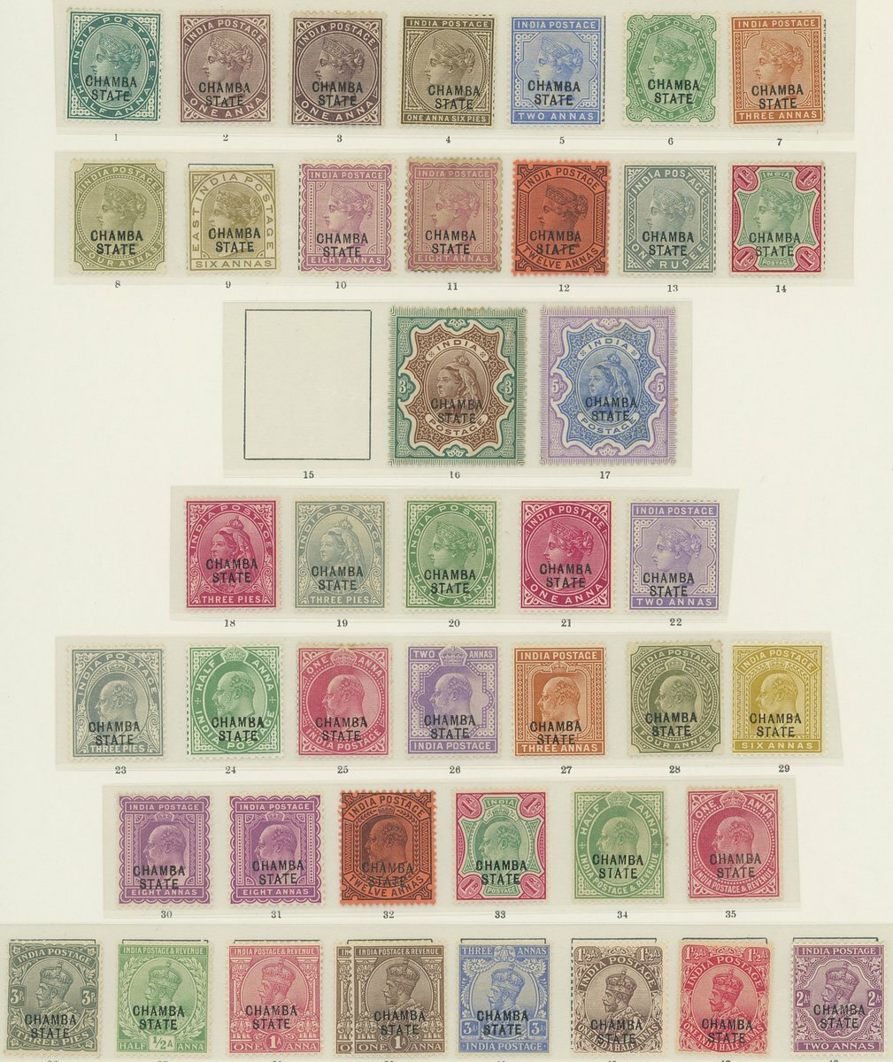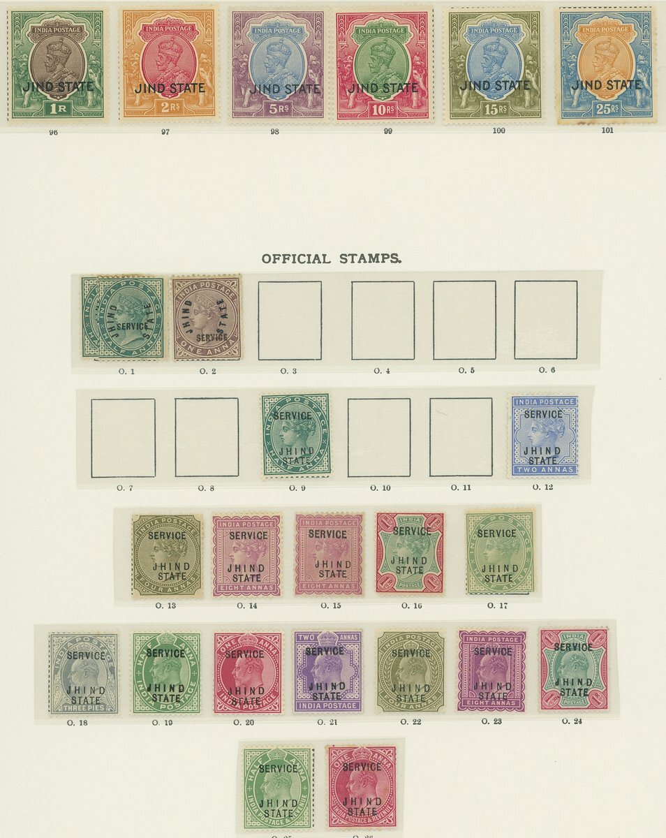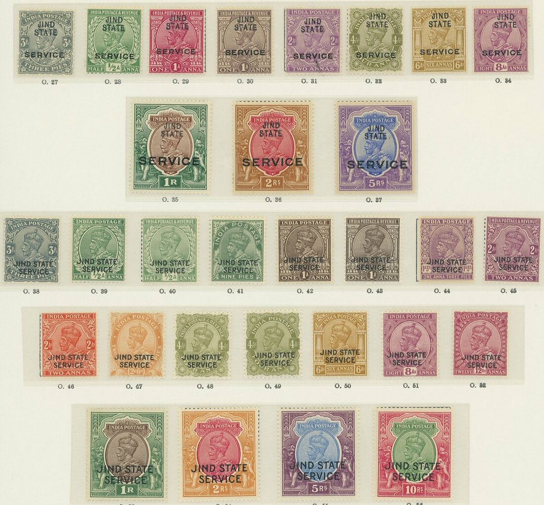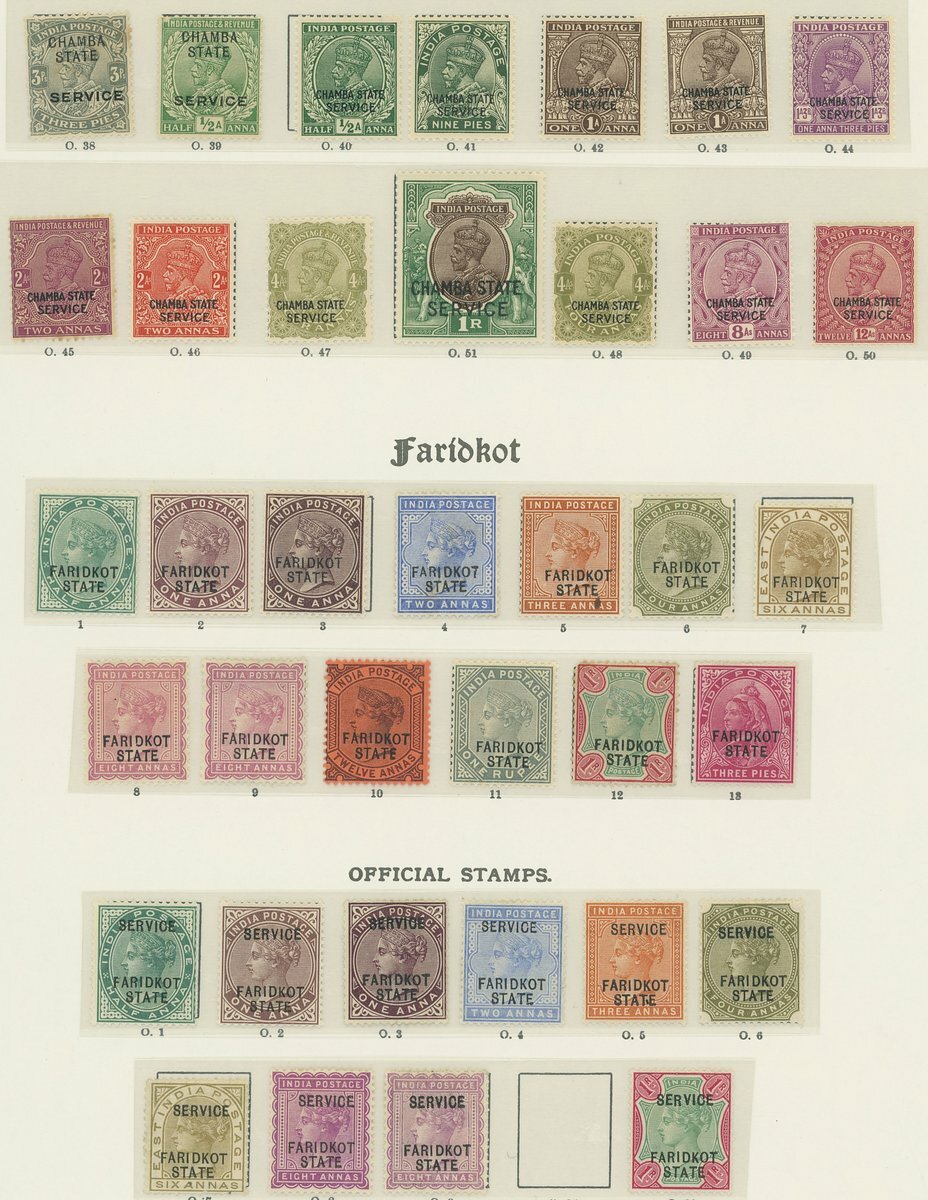 1887-1937 mint collection on album pages with sets largely complete for Chamba (no 1887-95 2r.), Faridkot, Gwalior (no Type 1 overprints), Jind (no