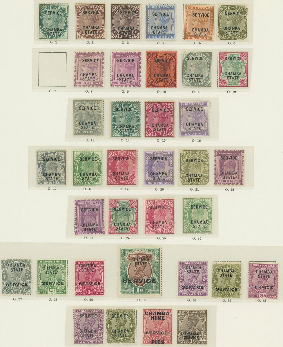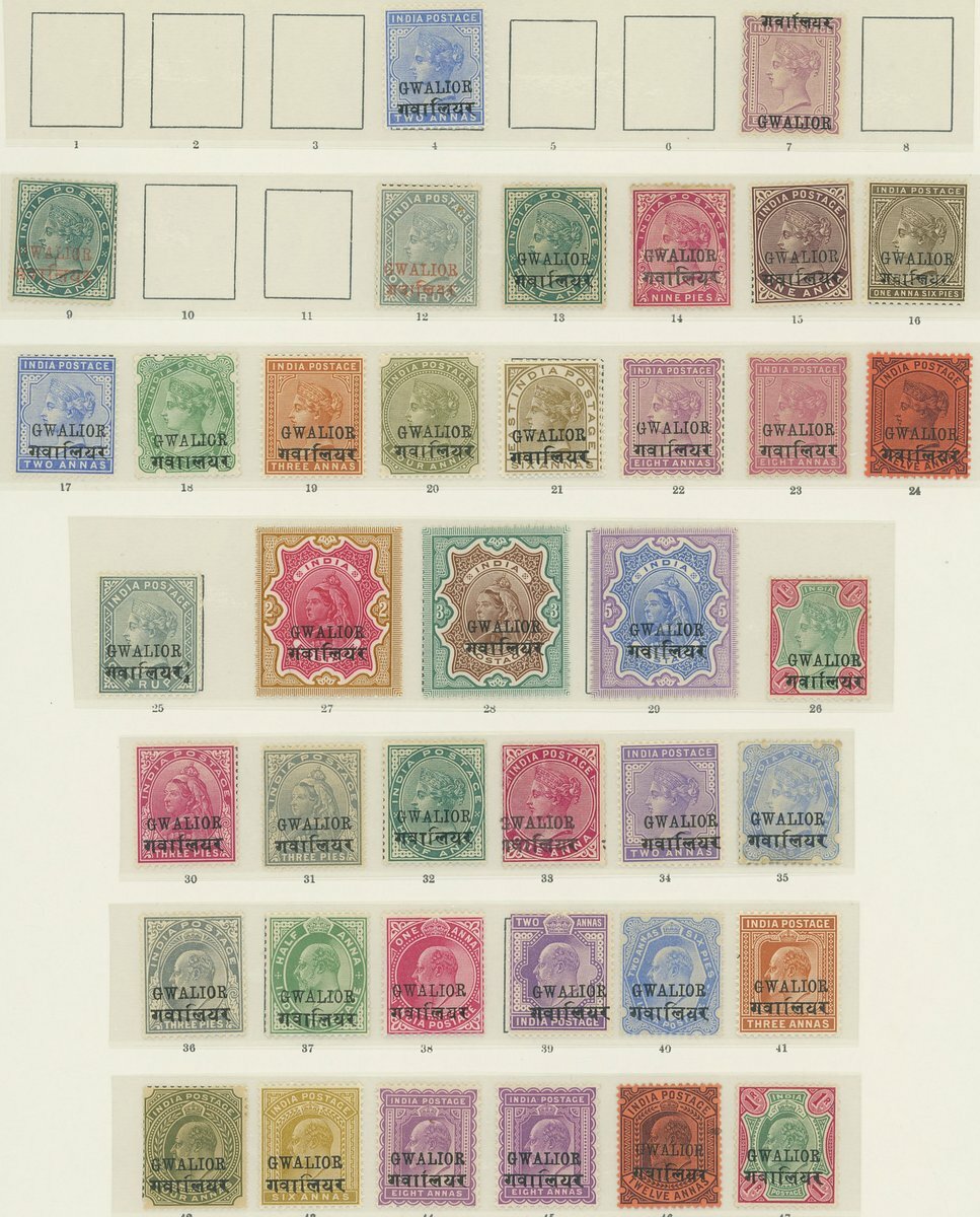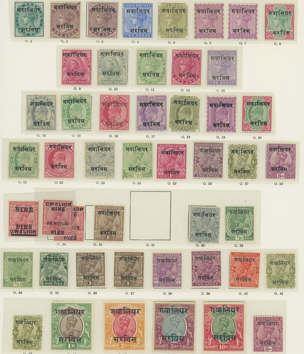 1887-1937 mint collection on album pages with sets largely complete for Chamba (no 1887-95 2r.), Faridkot, Gwalior (no Type 1 overprints), Jind (no
