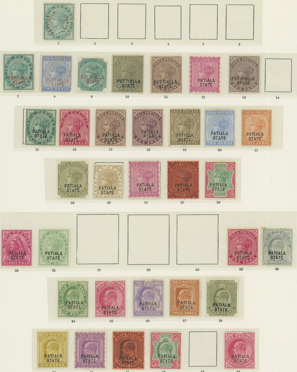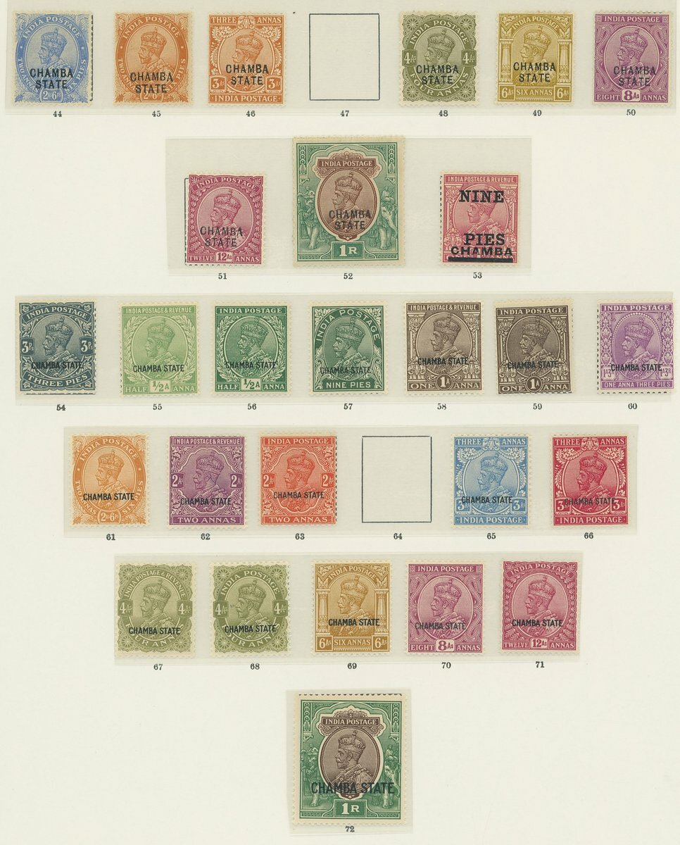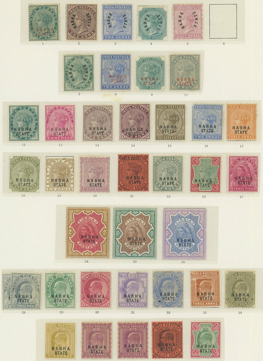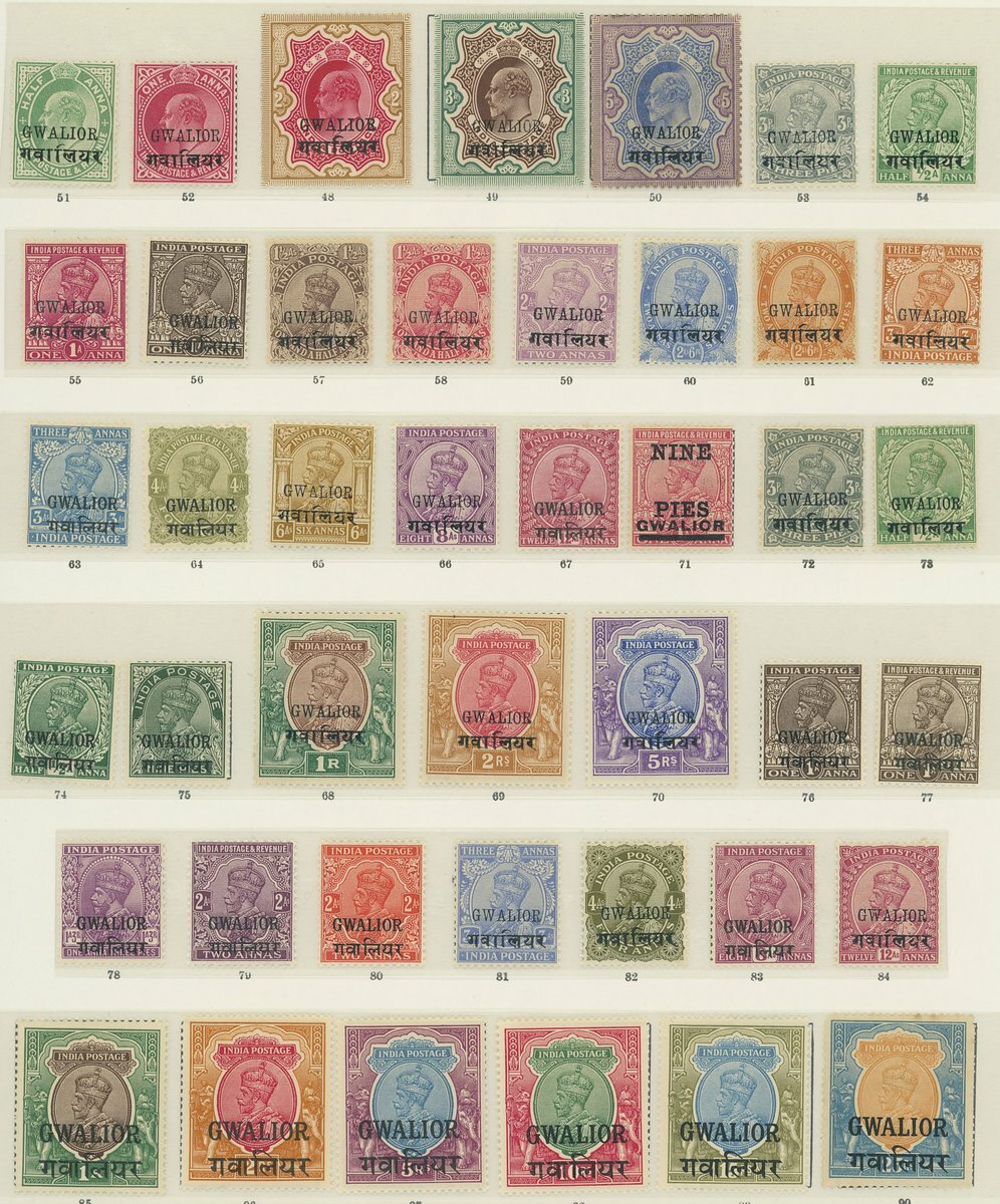 1887-1937 mint collection on album pages with sets largely complete for Chamba (no 1887-95 2r.), Faridkot, Gwalior (no Type 1 overprints), Jind (no