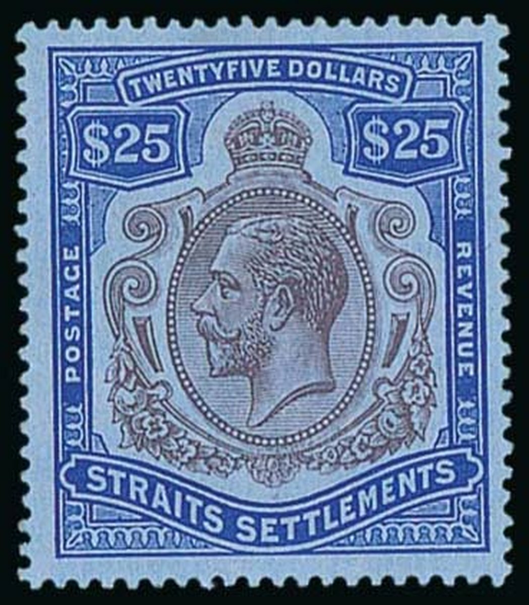 1912-23 MCA $25 purple and blue, well-centred and with large part original gum; a fine example. S.G. 213, £3,250