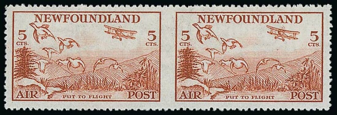 1933 Air 5c. red-brown, horizontal pair variety imperforate between, very fine unmounted mint. B.P.A. Certificate (1999). S.G. 230b, £1,000