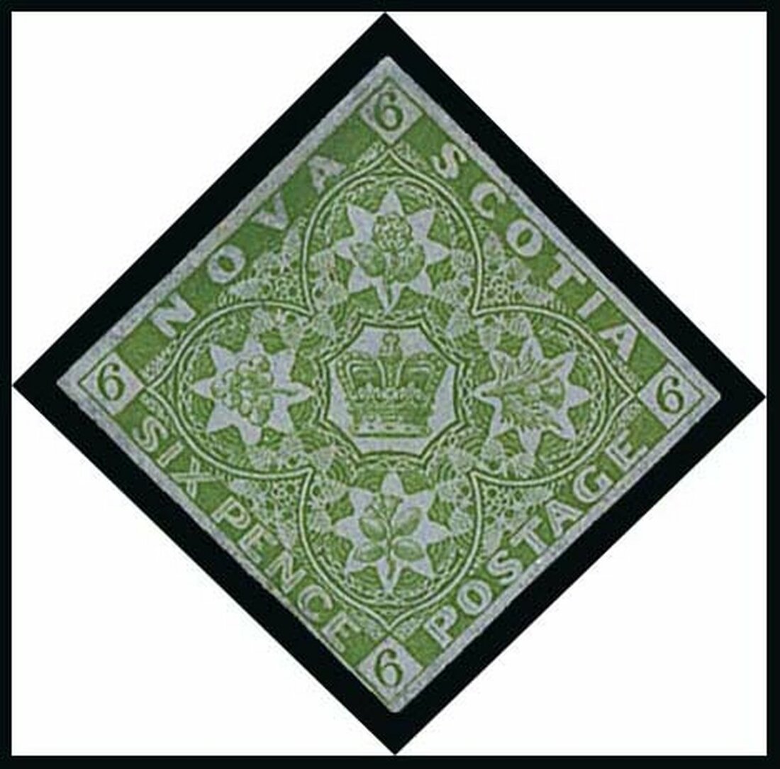 1851-60 6d. yellow-green, clear margins, thinned at top, unused with part original gum disturbed; good colour, a rare stamp in unused condition. R.P.S. (1957) and Greene Foundation (2020) Certificates. S.G. 5, £5,000