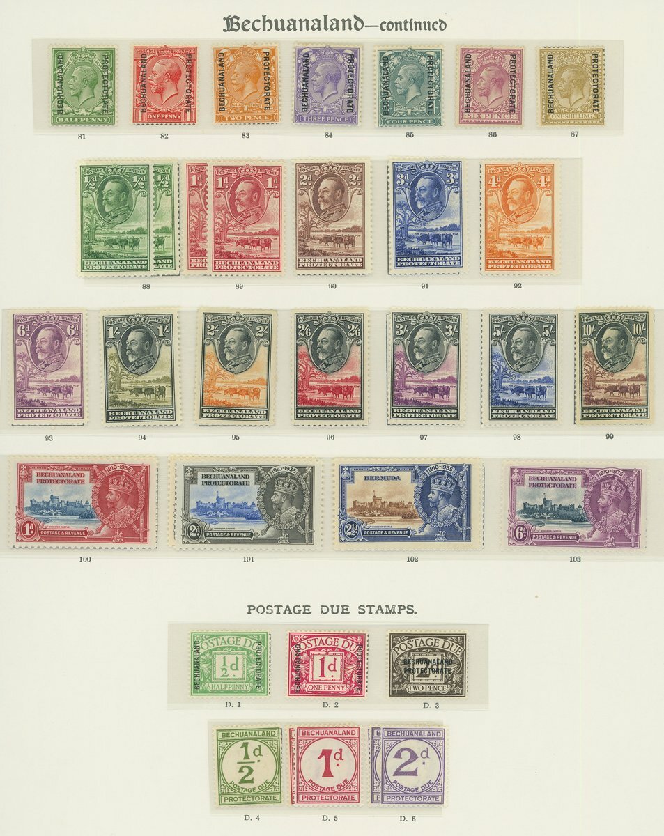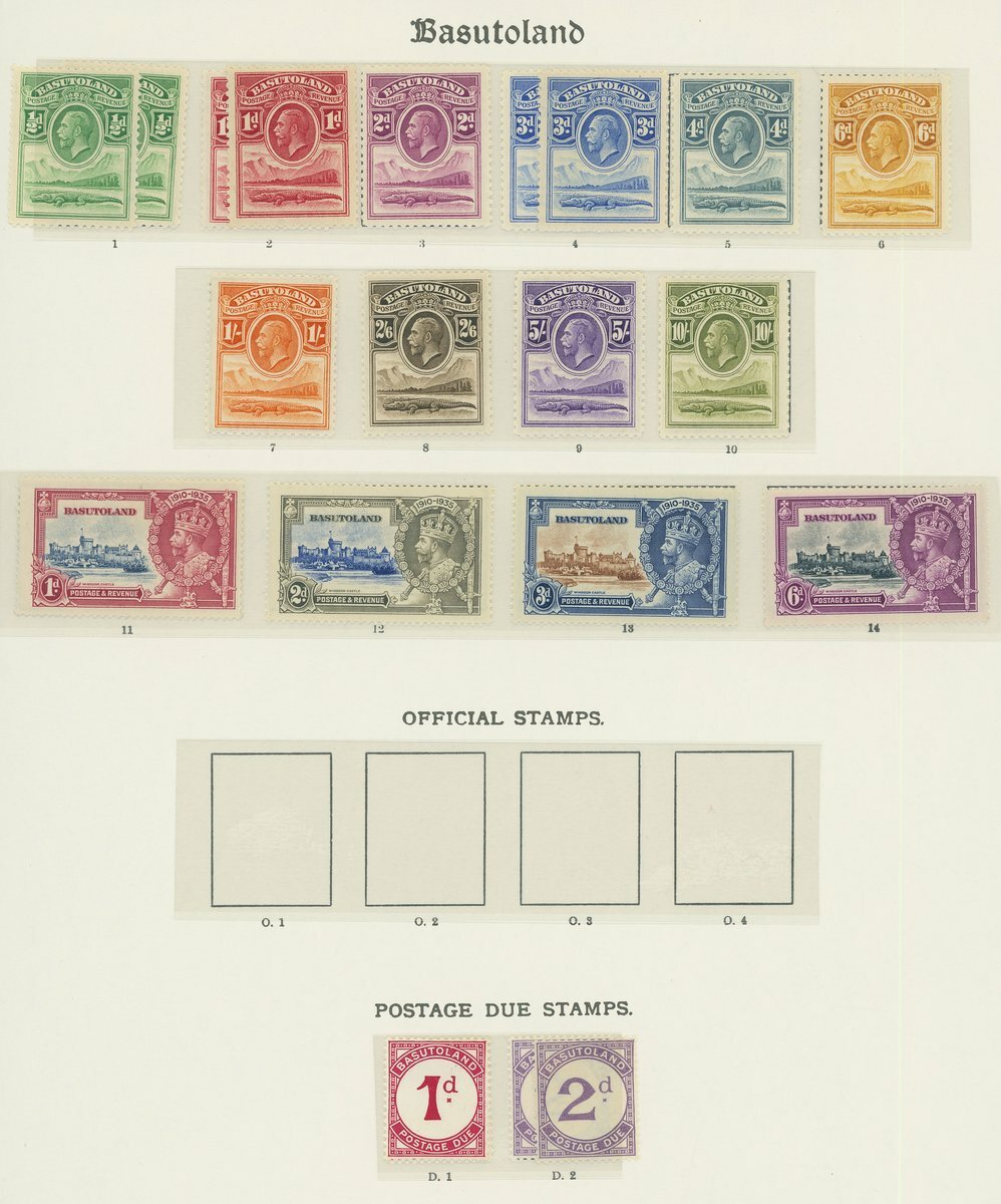 1884-1935 mint British Africa collection on album pages including Basutoland, with 1923 set to 10/-and 1935 Silver Jubilee, Bechuanaland including Stellaland 1884 set to 1/-, British Bechuanaland with 1888 10/- mint £1 and £5 handstamped