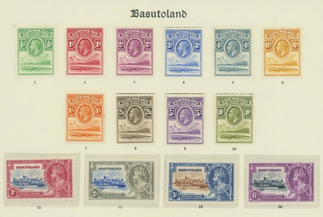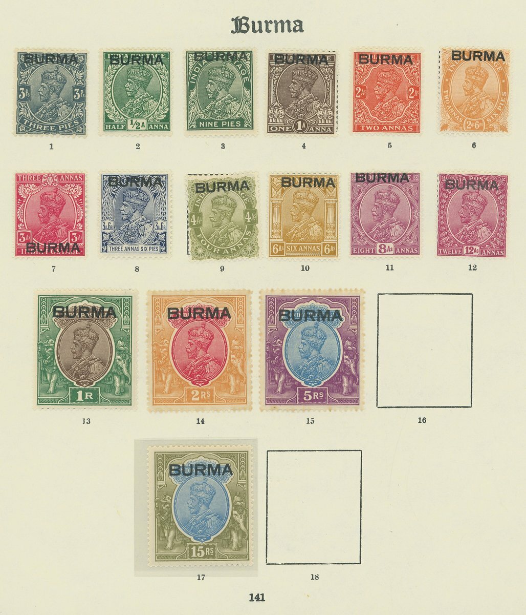 A group of mainly mint sets on cards and album pages including Bahrain with 1933 part set to 2r., Basutoland with 1933 set to 10/-, 1935 Silver Jubilees and Postage Dues, Burma with 1937 part set to 5r. and with 15r. and also Official part set to 1r., Cayman Islands with 1921-26 set to 10/- overprinted
