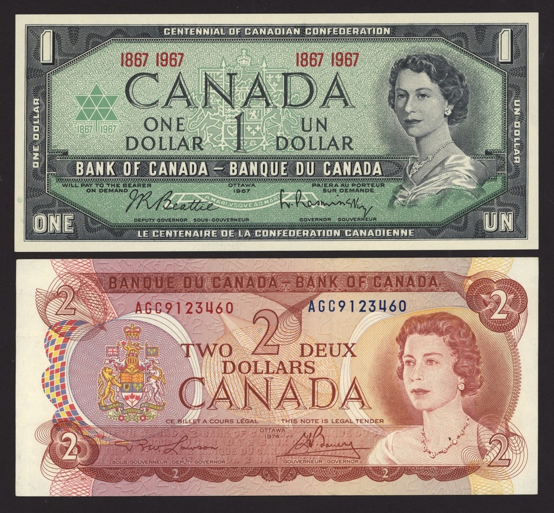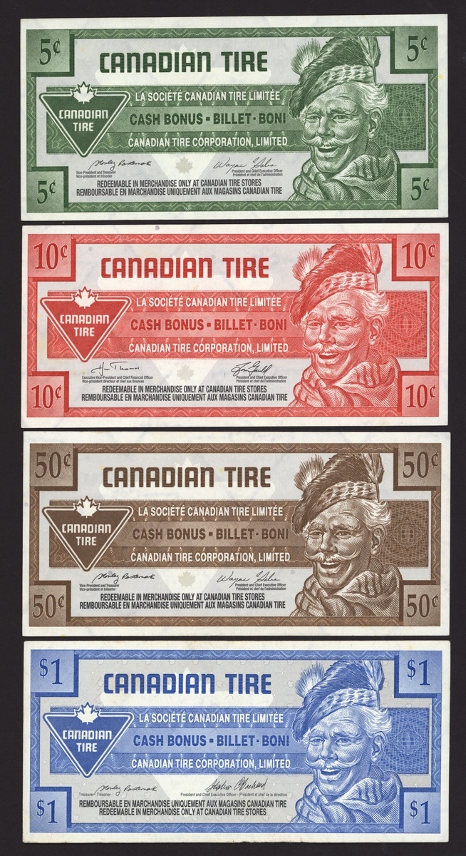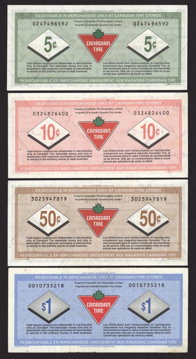 (x) Canadian Banknotes Collection, [10 notes] assorted Canadian notes, $1, $2, $5, and tire corporation vouchers, (Pick 74, 86, 101, unlisted), about extremely fine to uncirculated (10 notes)
