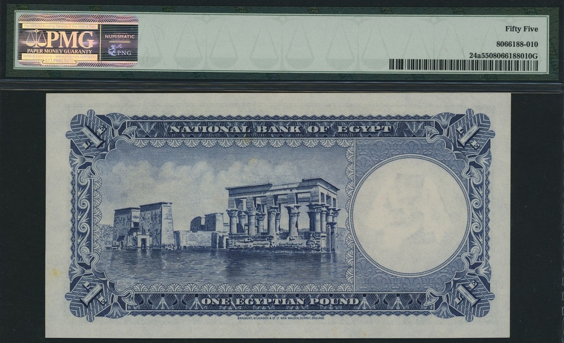 National Bank of Egypt, £1, 1950, serial number GH/8 458959, (Pick 24a, BNB 123), in PMG holder 55 About Uncirculated