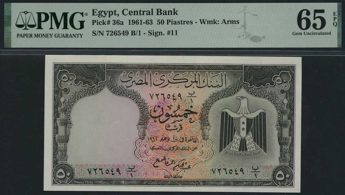 (x) National Bank of Egypt, 50 Piastres, 1961, B/1 726549, (Pick 36a, BNB 302a), in PMG holder 65 EPQ Gem Uncirculated