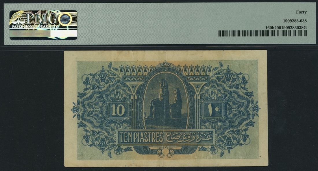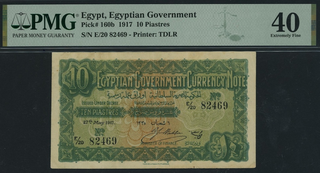 (x) Egyptian Government, Egypt, 10 Piastres, 27th May 1917, serial number E/20 82569, (Pick 160b, BNB 206), in PMG holder 40 Extremely Fine