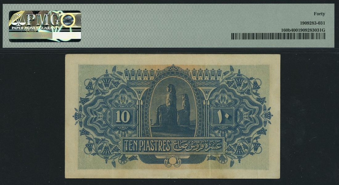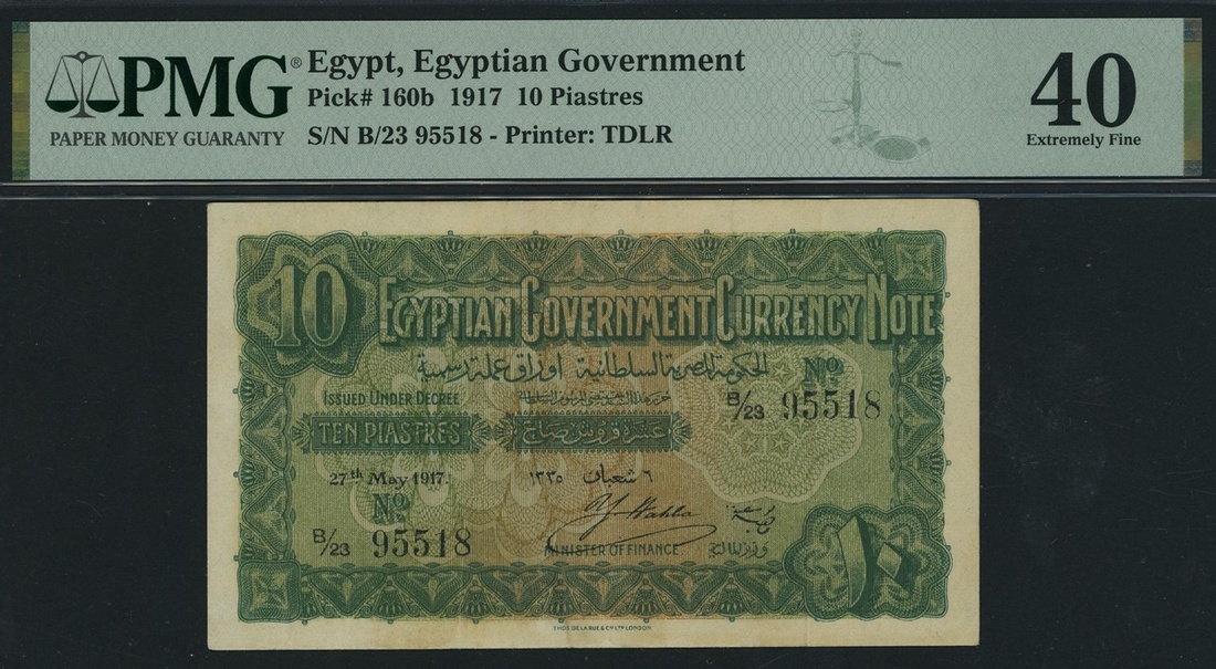 (x) Egyptian Government, Egypt, 10 Piastres, 27th May 1917, serial number B/23 95518, (Pick 160b, BNB 206), in PMG holder 40 Extremely Fine