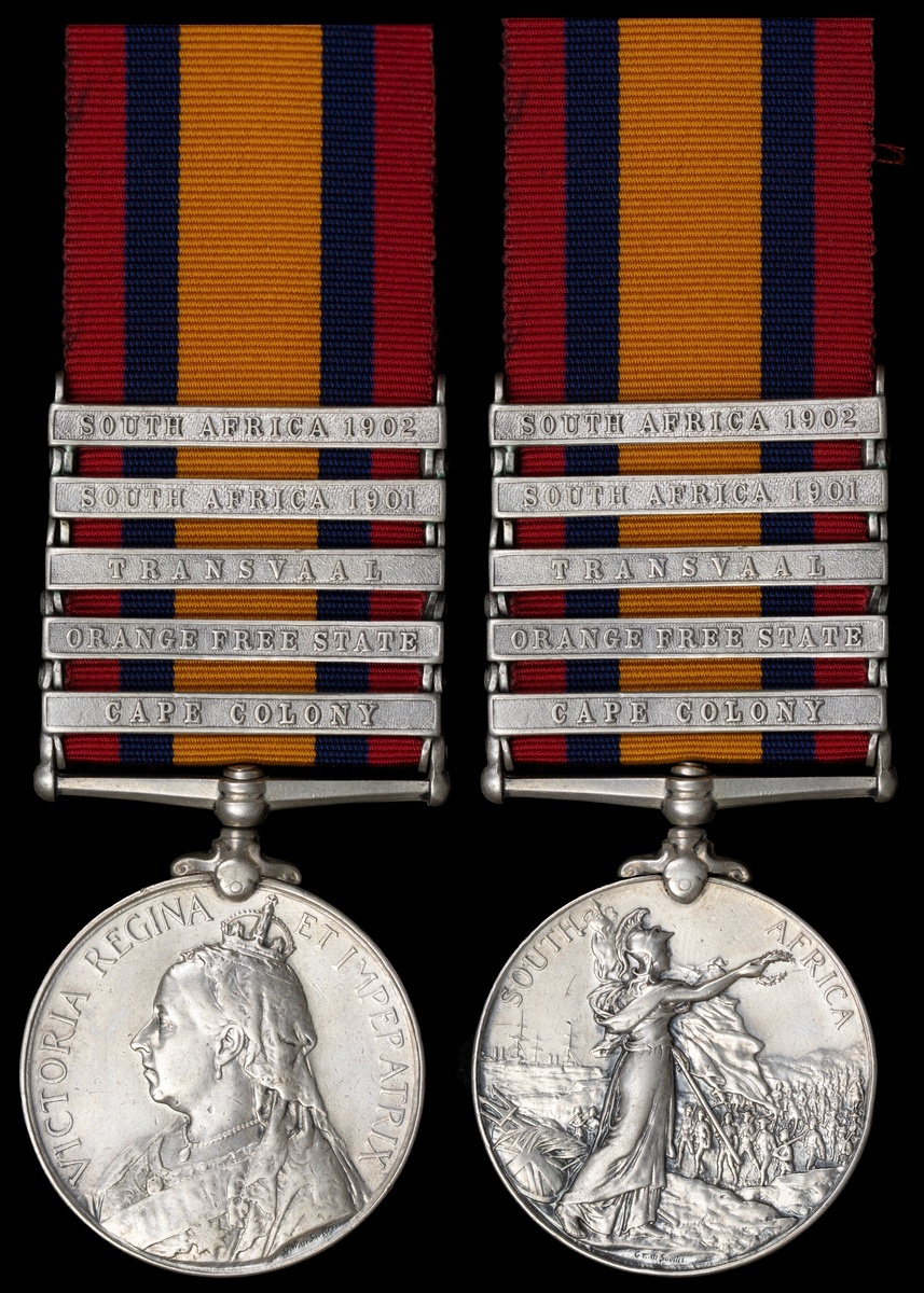 (x) Queen's South Africa 1899-1902, 5 clasps, Cape Colony, Orange Free State, Transvaal, South Africa 1901, South Africa 1902 (2082 3rd Cl. Tpr: W.J. Smith. S.A.C.), suspension slightly loose, edge wear, otherwise very fine