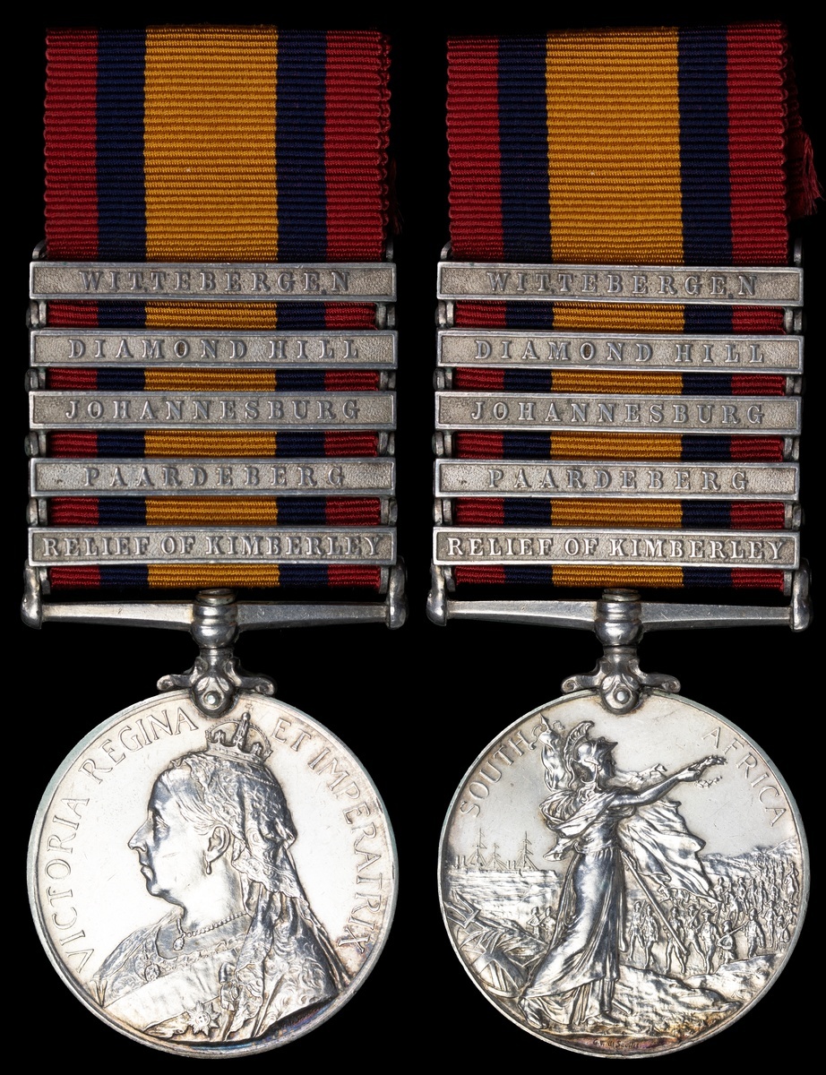 The tragic Queen's South Africa Medal awarded to Battery Quarter Master Sergeant W. Lednor, who having been accused of a crime he denied, committed suicide in South Africa, leaving a letter to his fiancé alongside his body