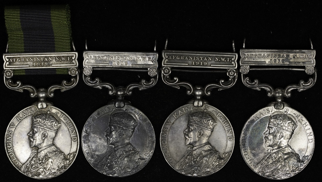 India General Service 1908-35, 1 clasp, Afghanistan N.W.F. 1919 (4) (942 Carpt. Imam Din, 4 Bullock Cps., 333639 Bearer Lachhhi. 3 Coy. A.B. B.C., 4308 Wd-Svt. Shah Sowar, A.H.C., 195. Dvr. Ali Shan 38-Pack Baty.), overall contact wear, very fine (4)