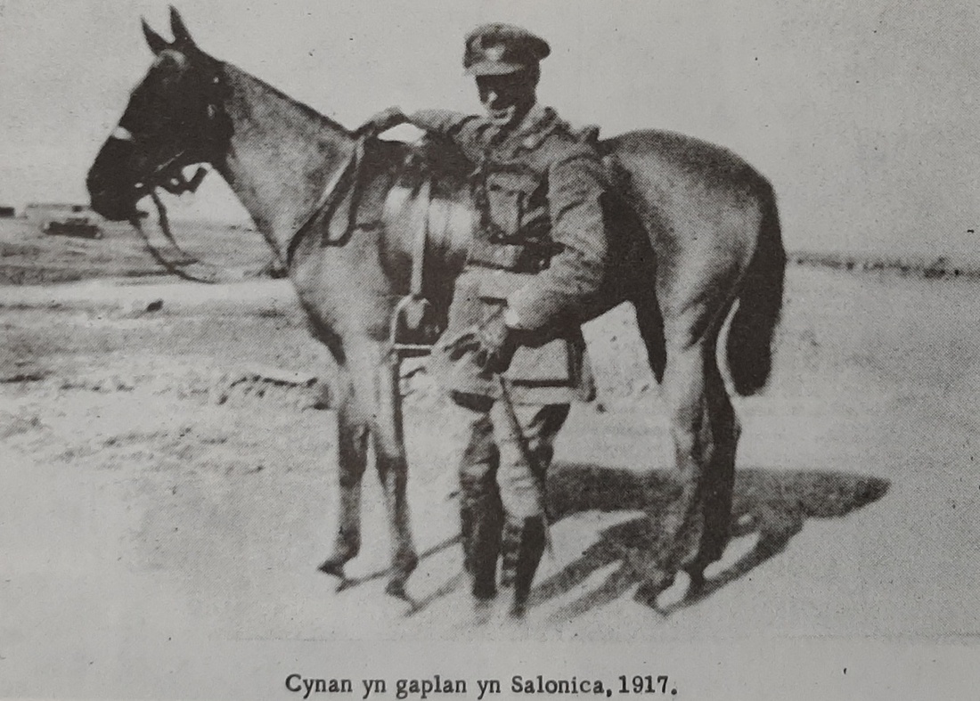 Albert Evans-Jones later also known as Cynan, was born at Pwllheli, Caernarvonshire on 14 April 1895 the son of Richard and Hannah Jones, his father ran the Central Restaurant at Penlan Street, Pwllheli. Educated at Pwllheli Grammer School and later the University College of North Wales, Bangor he graduated in 1916, immediately joining the 86th (Welsh Student Company) of the Royal Army Medical Corps. However he was Appointed Chaplain to the Forces, 4th Class on 5 September 1917 whilst serving in Salonica.